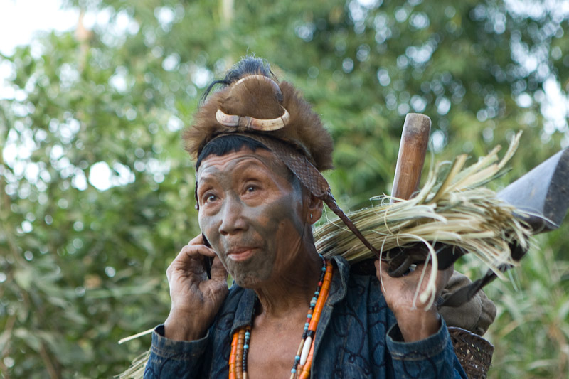 Naga (Konyak?) mit Gesichtstätowierung als Zeichen erfolgreicher Teilnahme an Kopfjagden