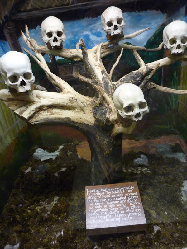 Kohima - Museum. Die Kopfjagden bildeten einen essentiellen Bestandteil der Kultur der Naga. Die letzte Kopfjagd wird für 1978 berichtet