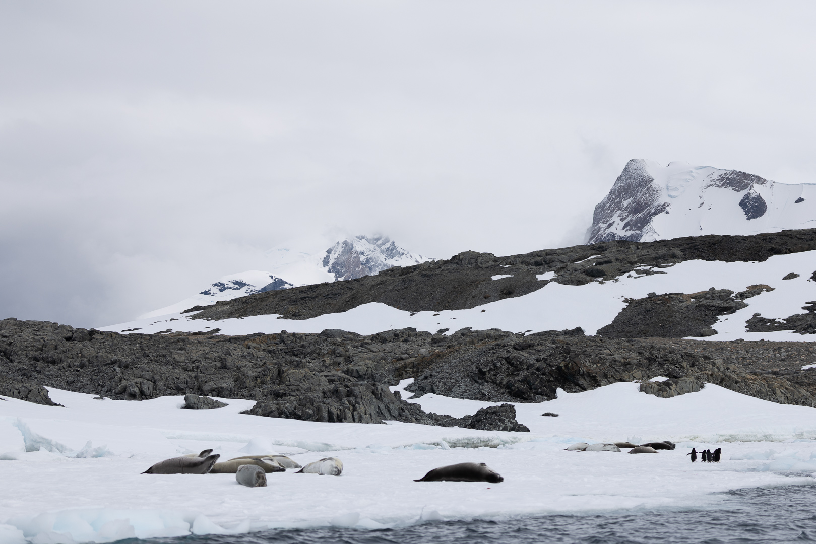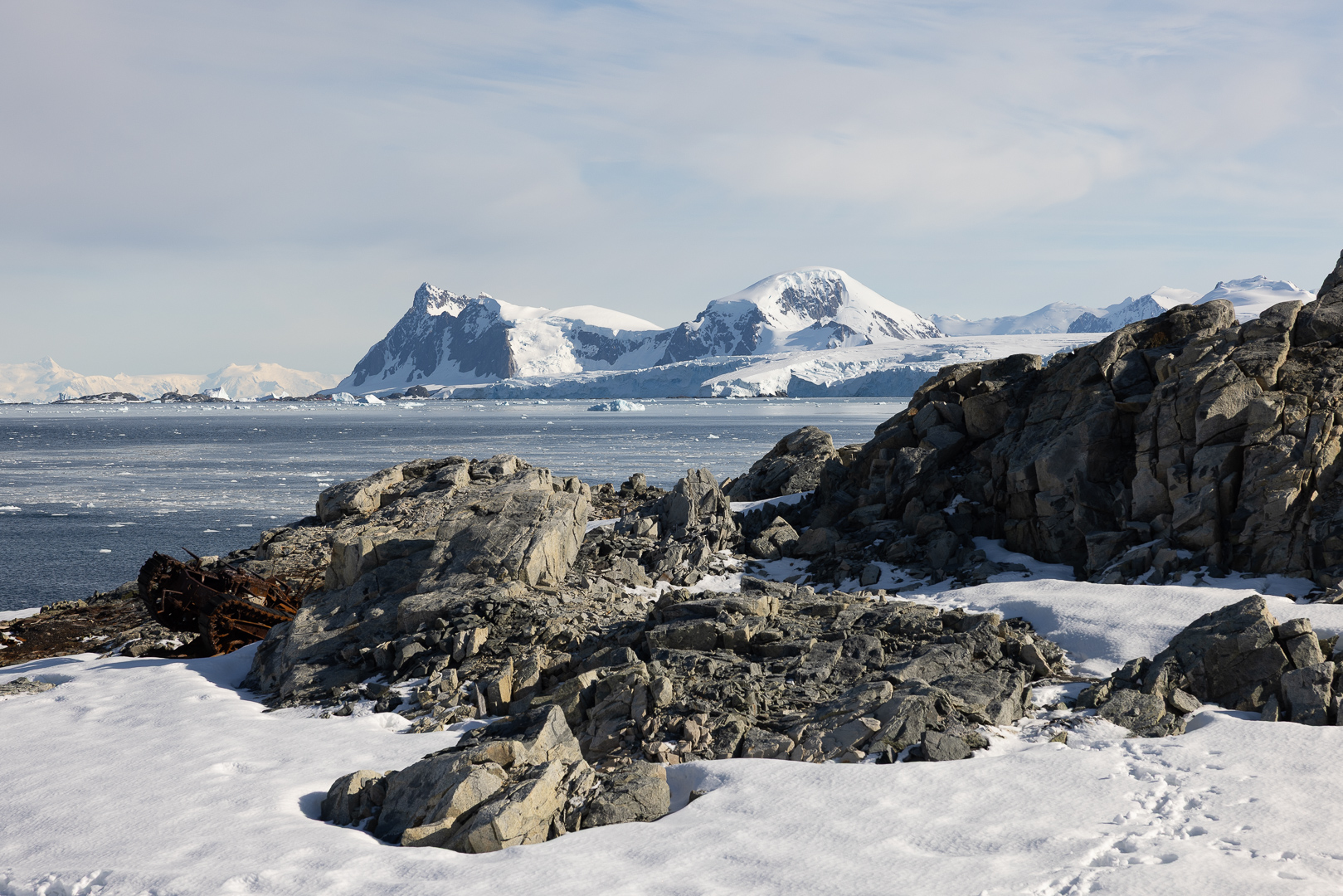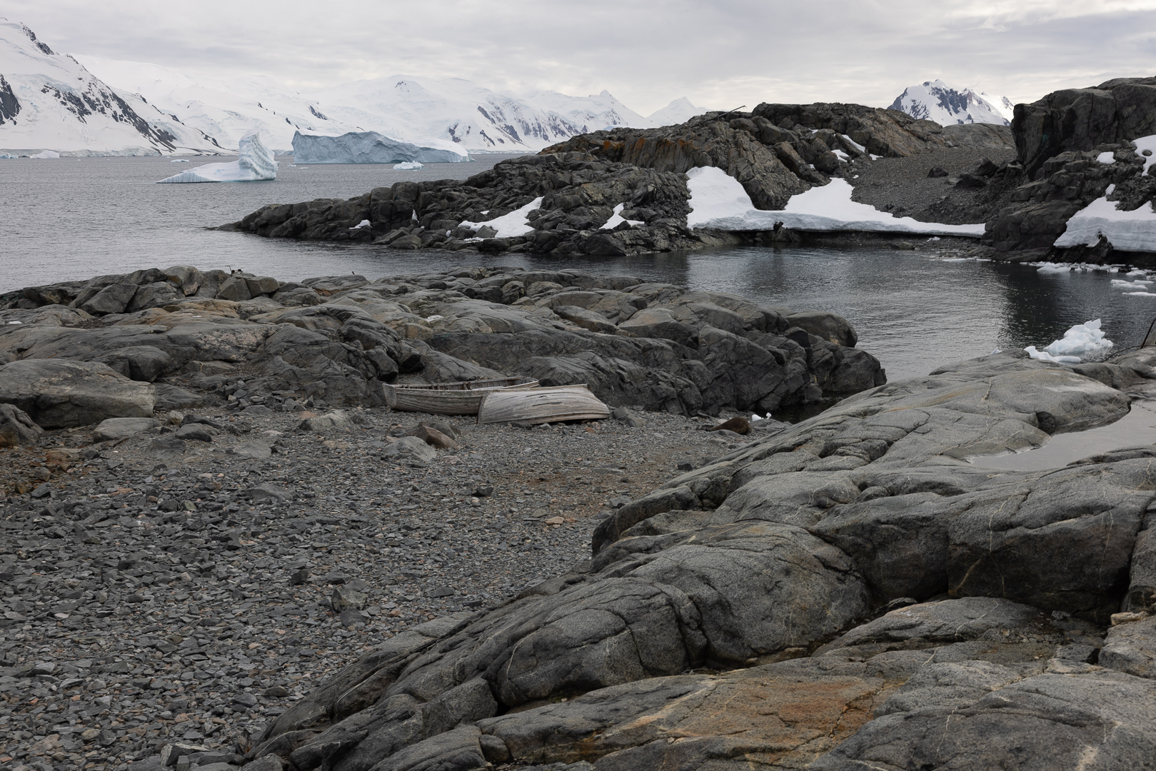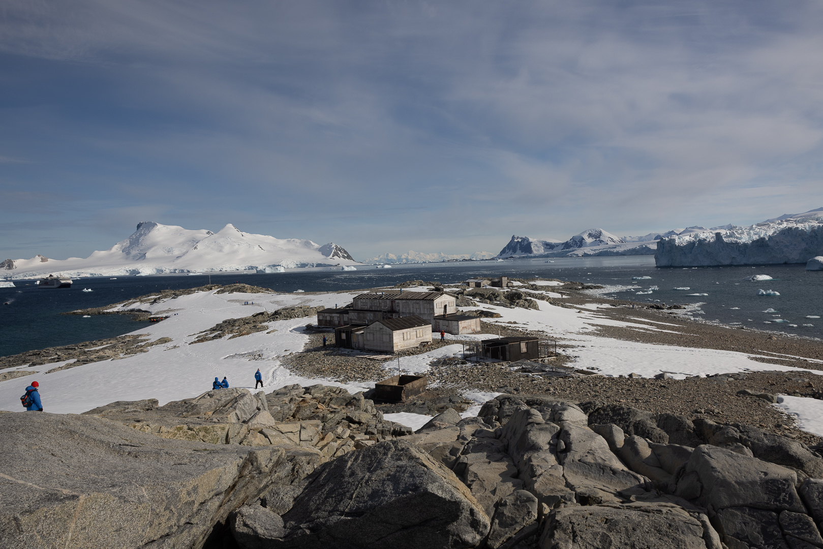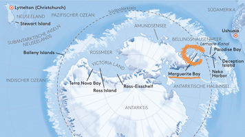südlich des Polarkreises ist die Zahl der Schiffe schon deutlich ausgedünnt gegenüber dem nördlichen Teil der antarktischen Halbinsel. Wir haben im Bereich der Marguerite Bay die Inseln Horseshoe Island, Pouquoi Pas und Stonington als südlichsten Punkt besucht, sind an Jenny Island herangefahren und vor die britische Forschungsstatation Rothera ganz im Norden.