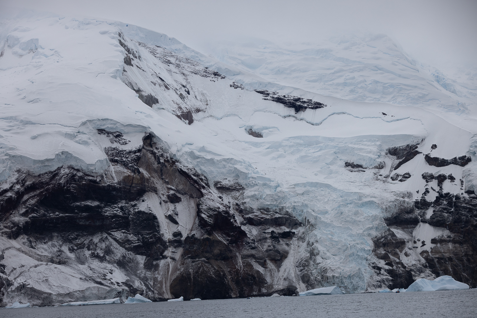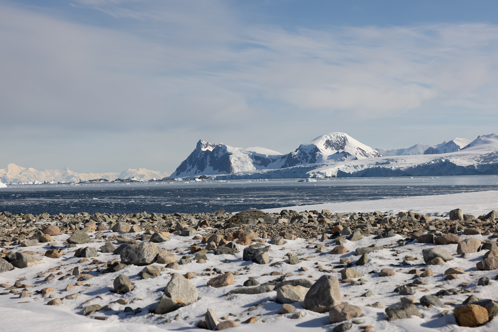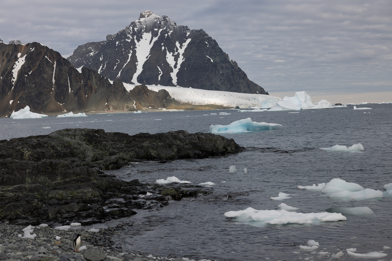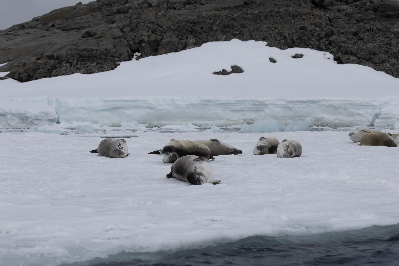 südlich des Polarkreises ist die Zahl der Schiffe schon deutlich ausgedünnt gegenüber dem nördlichen Teil der antarktischen Halbinsel. Wir haben im Bereich der Marguerite Bay die Inseln Horseshoe Island, Pouquoi Pas und Stonington als südlichsten Punkt besucht, sind an Jenny Island herangefahren und vor die britische Forschungsstatation Rothera ganz im Norden.