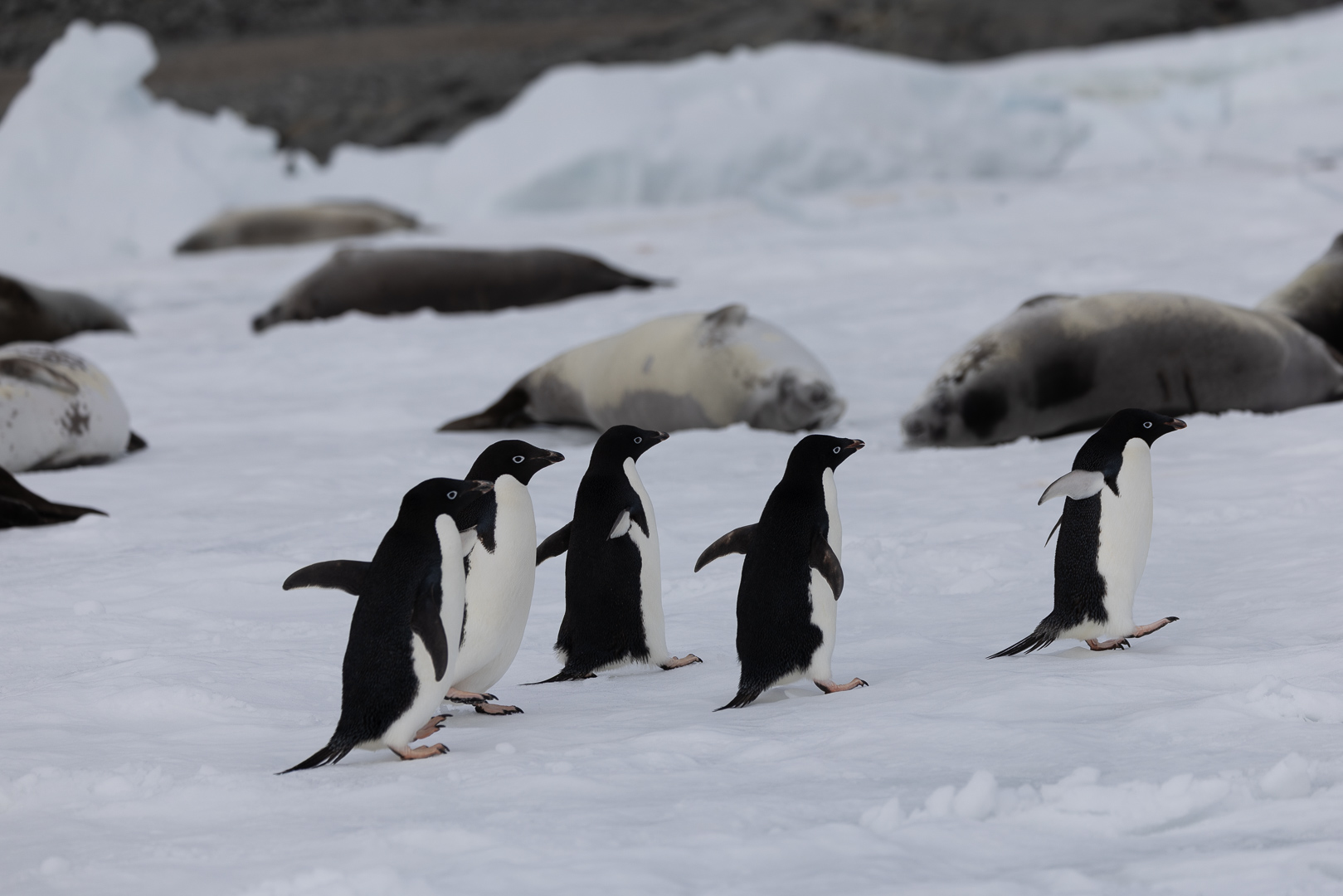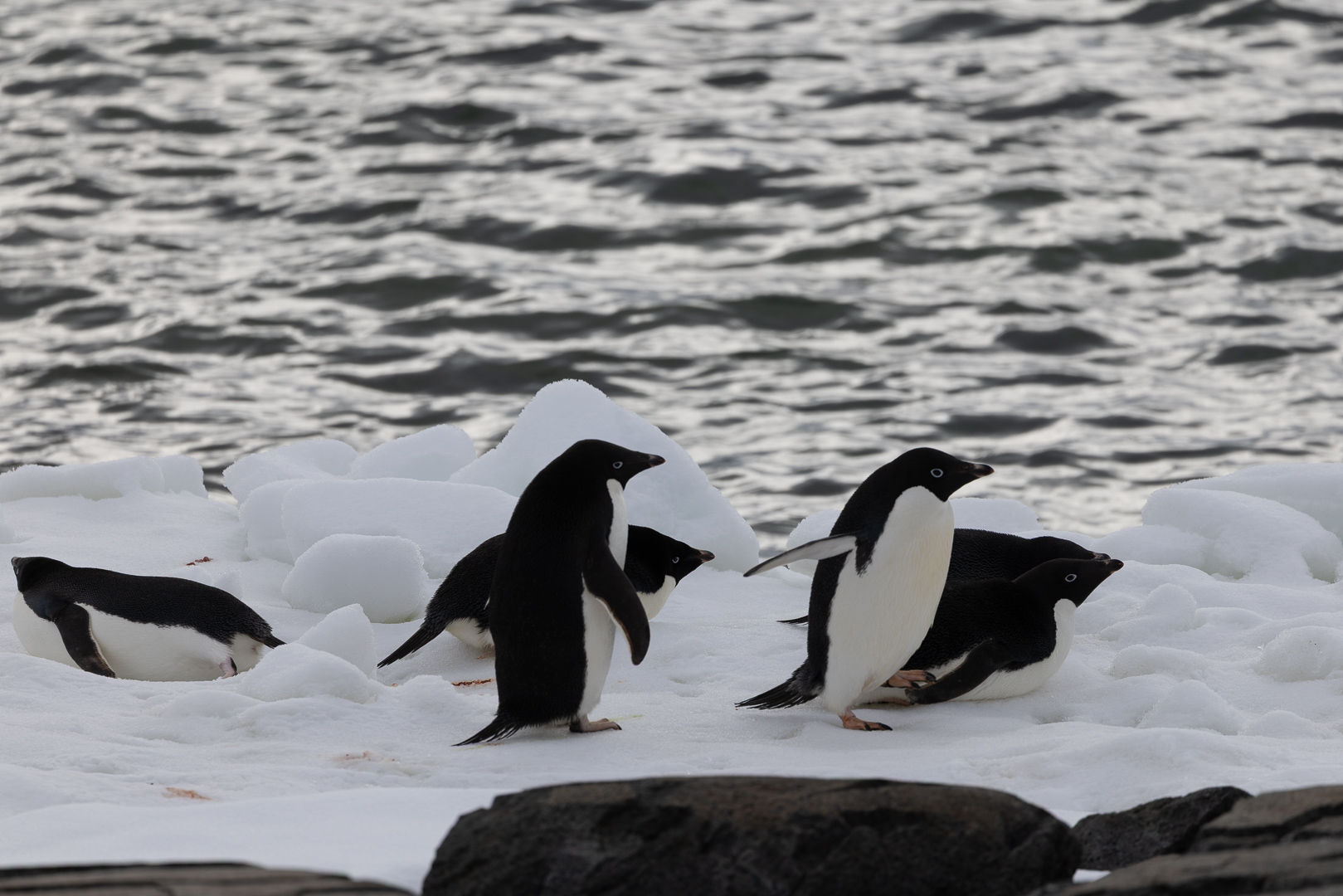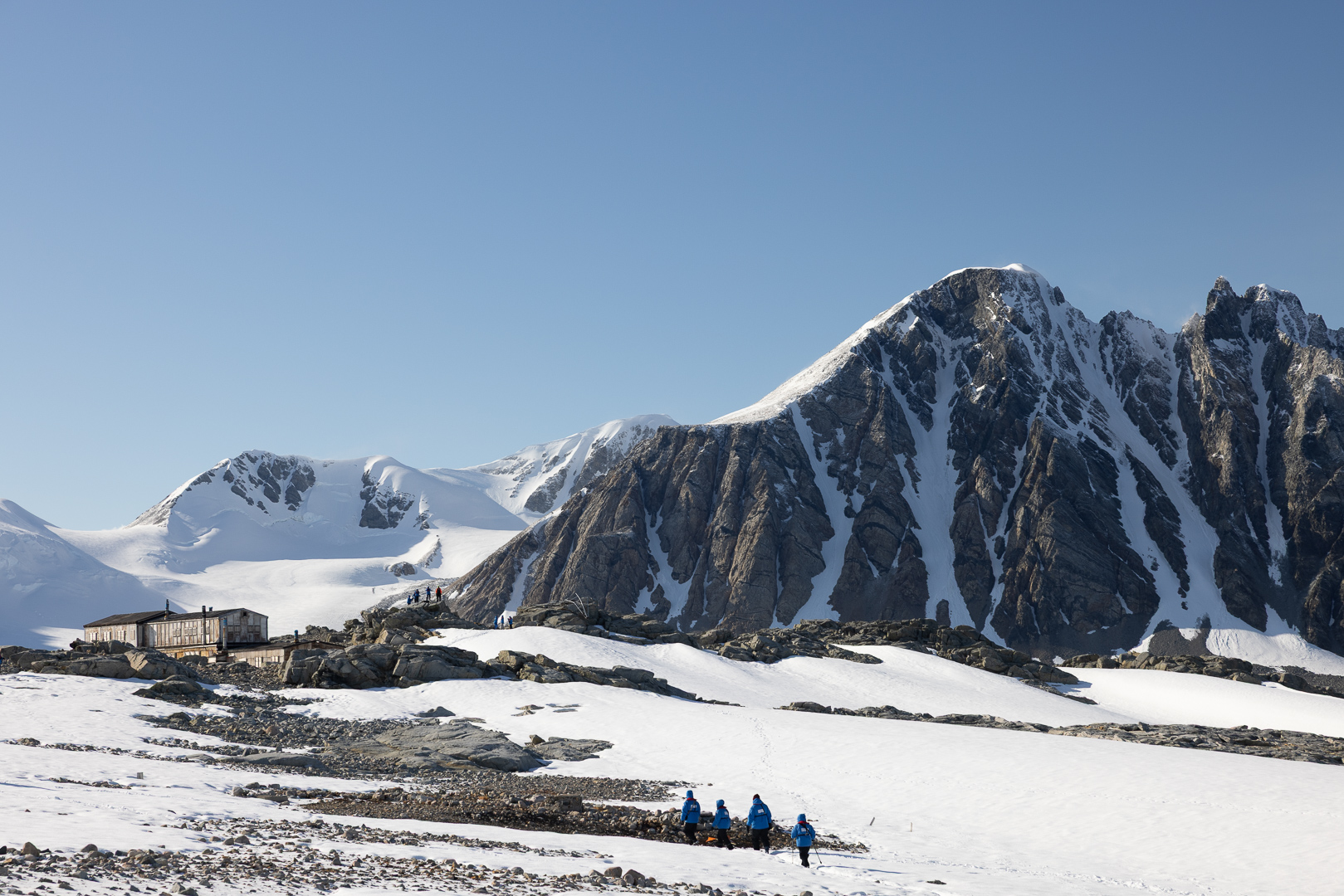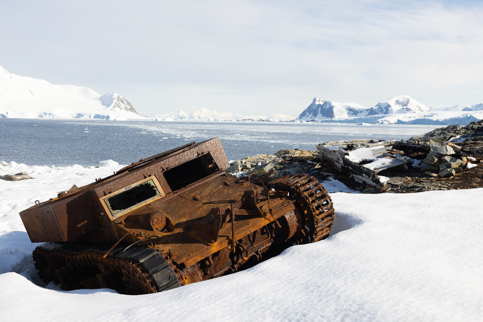 südlich des Polarkreises ist die Zahl der Schiffe schon deutlich ausgedünnt gegenüber dem nördlichen Teil der antarktischen Halbinsel. Wir haben im Bereich der Marguerite Bay die Inseln Horseshoe Island, Pouquoi Pas und Stonington als südlichsten Punkt besucht, sind an Jenny Island herangefahren und vor die britische Forschungsstatation Rothera ganz im Norden.
