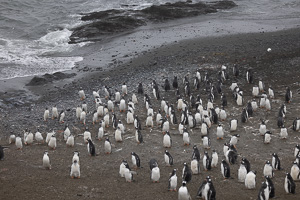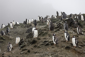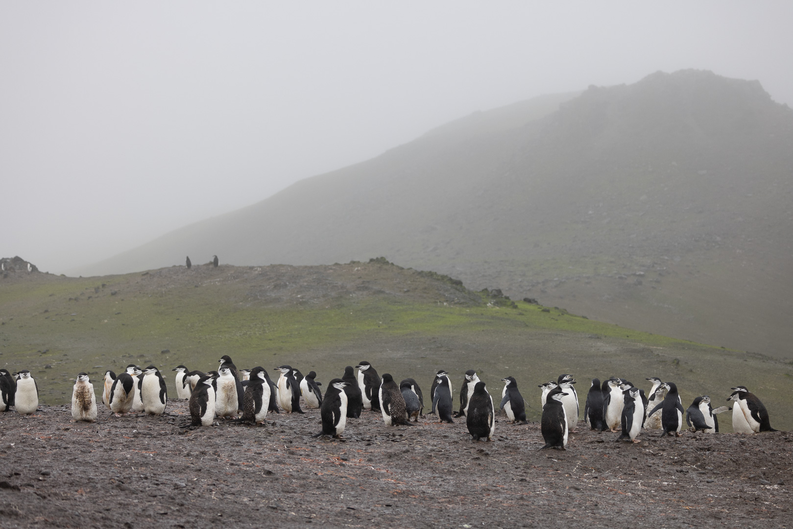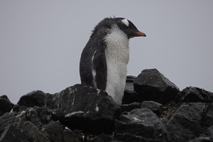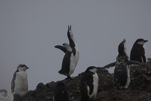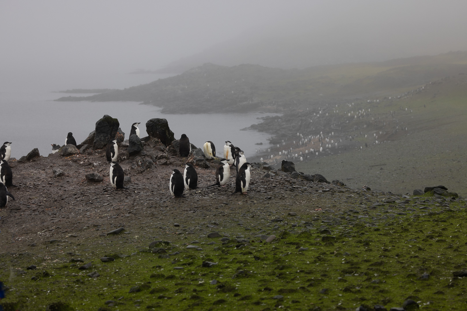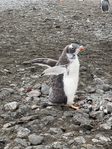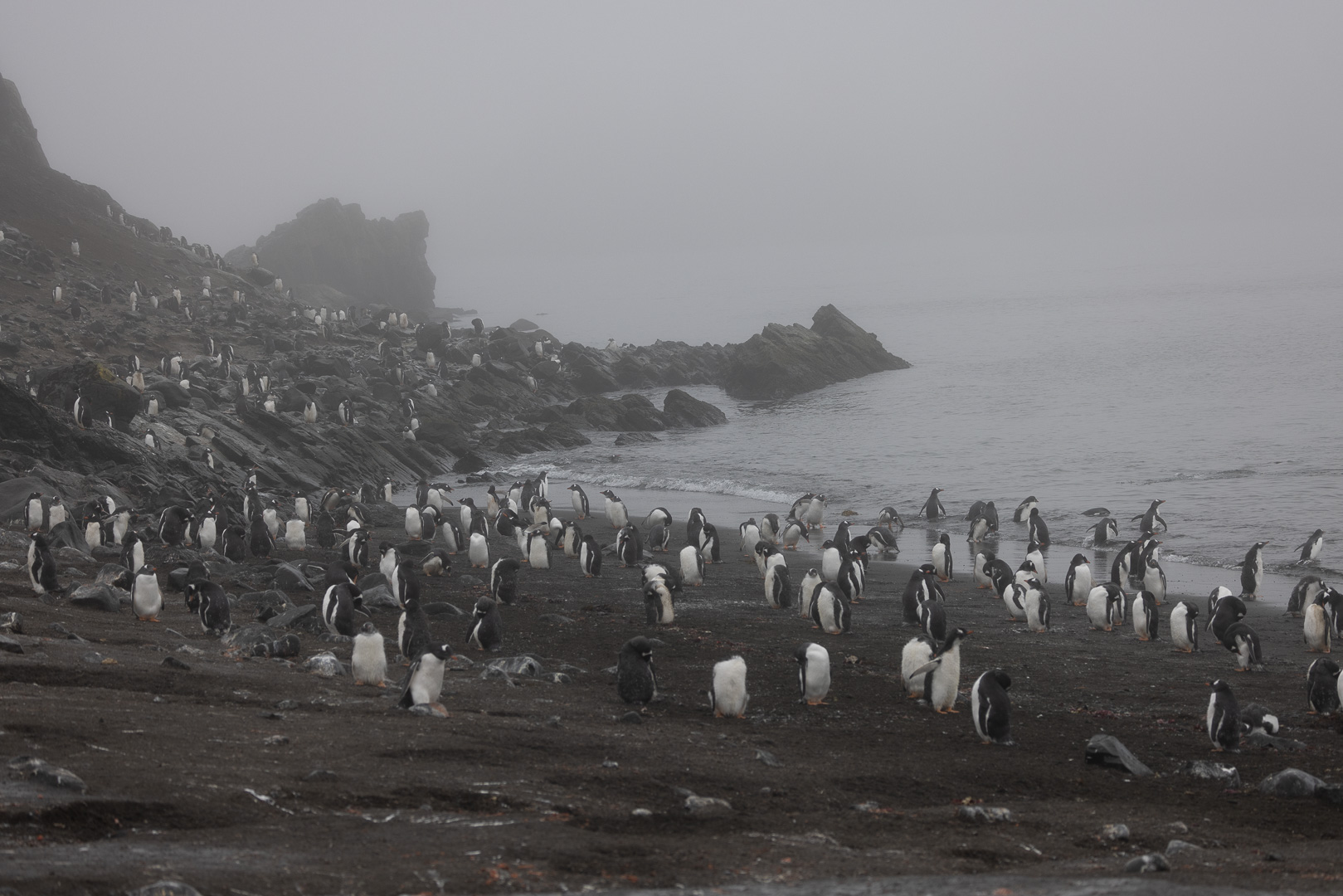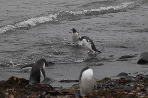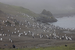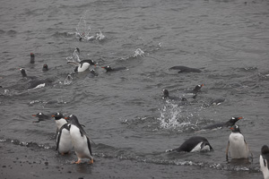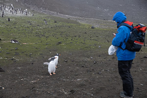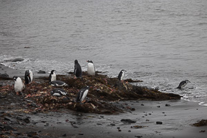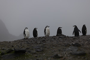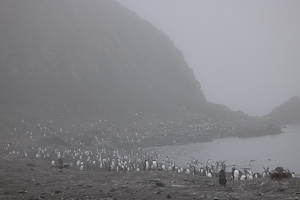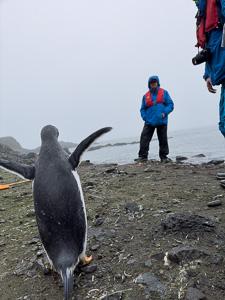Eine kleine Schwierigkeit stellte hier dar, dass wegen des dichten Nebels mit zeitweiligem Schneetreiben die Anlandestelle vom Schiff aus nicht zu sehen war, und umgekehrt das Schiff auch nicht für die zurückkehrenden Zodiaks. Diese wurden per Funk vom Schiff aus dirigiert.