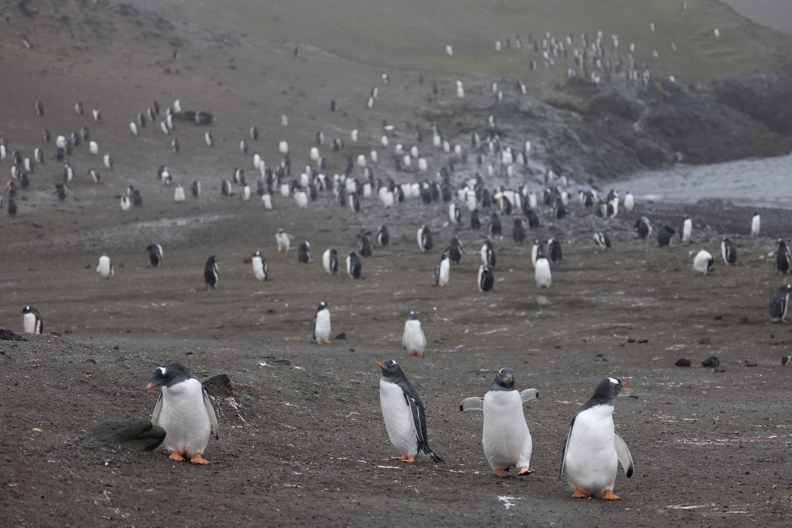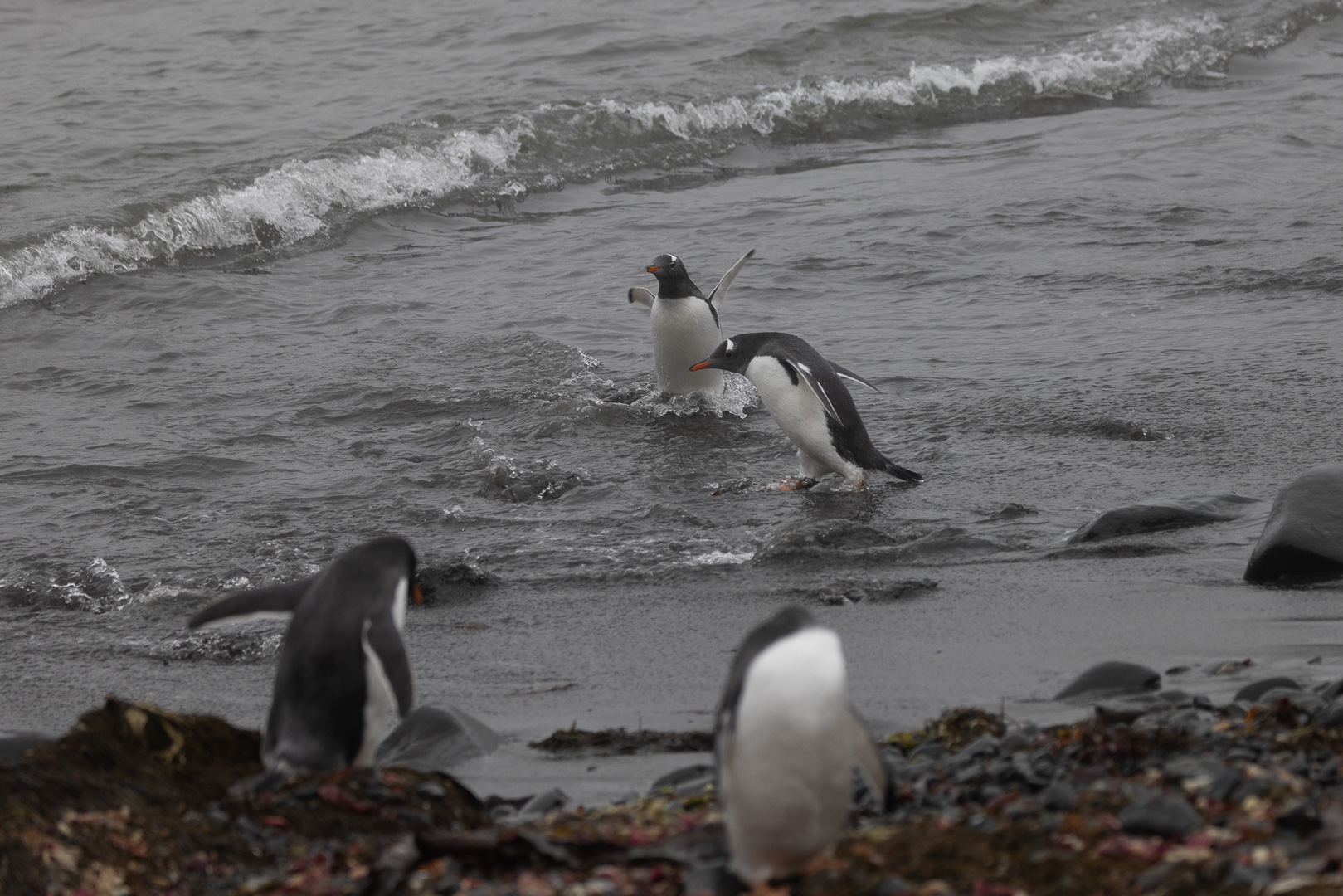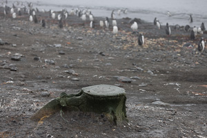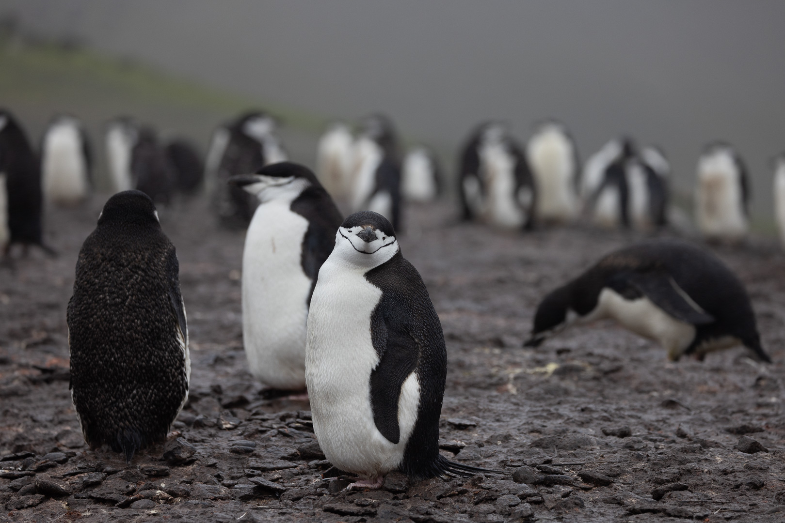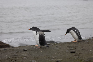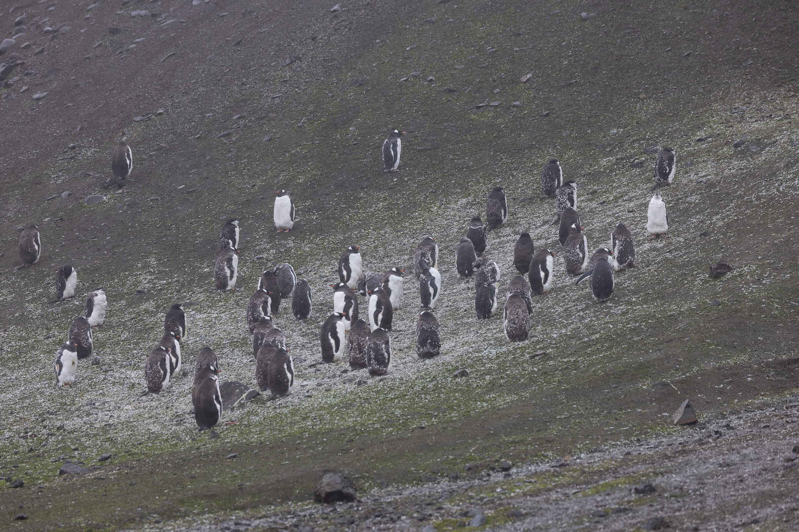 Eine kleine Schwierigkeit stellte hier dar, dass wegen des dichten Nebels mit zeitweiligem Schneetreiben die Anlandestelle vom Schiff aus nicht zu sehen war, und umgekehrt das Schiff auch nicht für die zurückkehrenden Zodiaks. Diese wurden per Funk vom Schiff aus dirigiert.