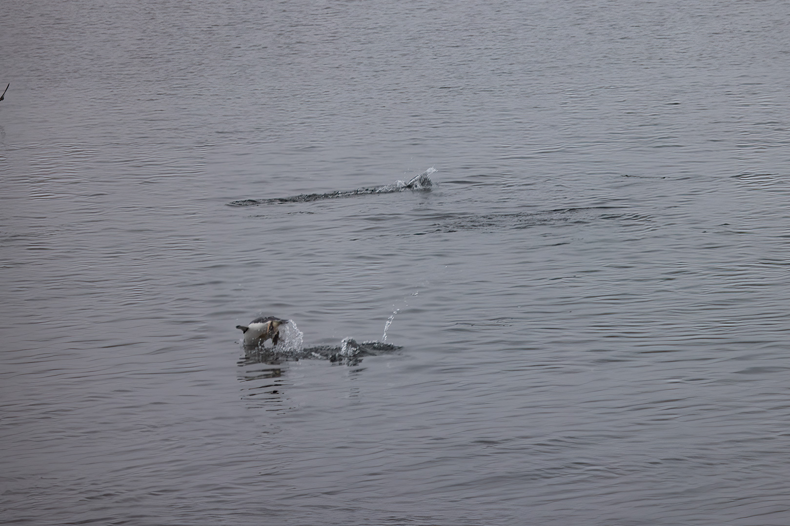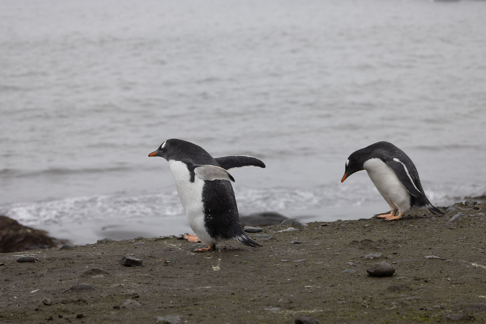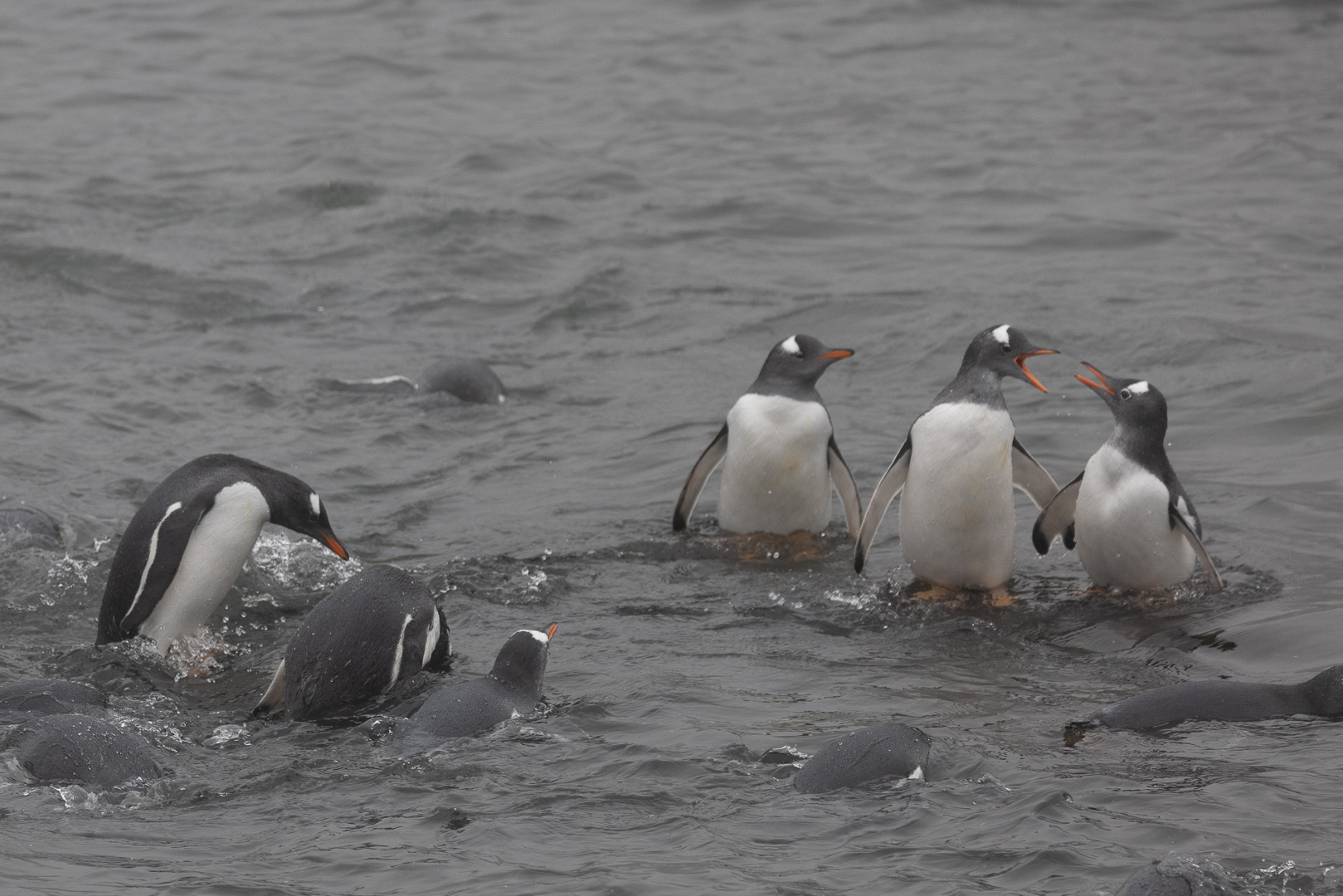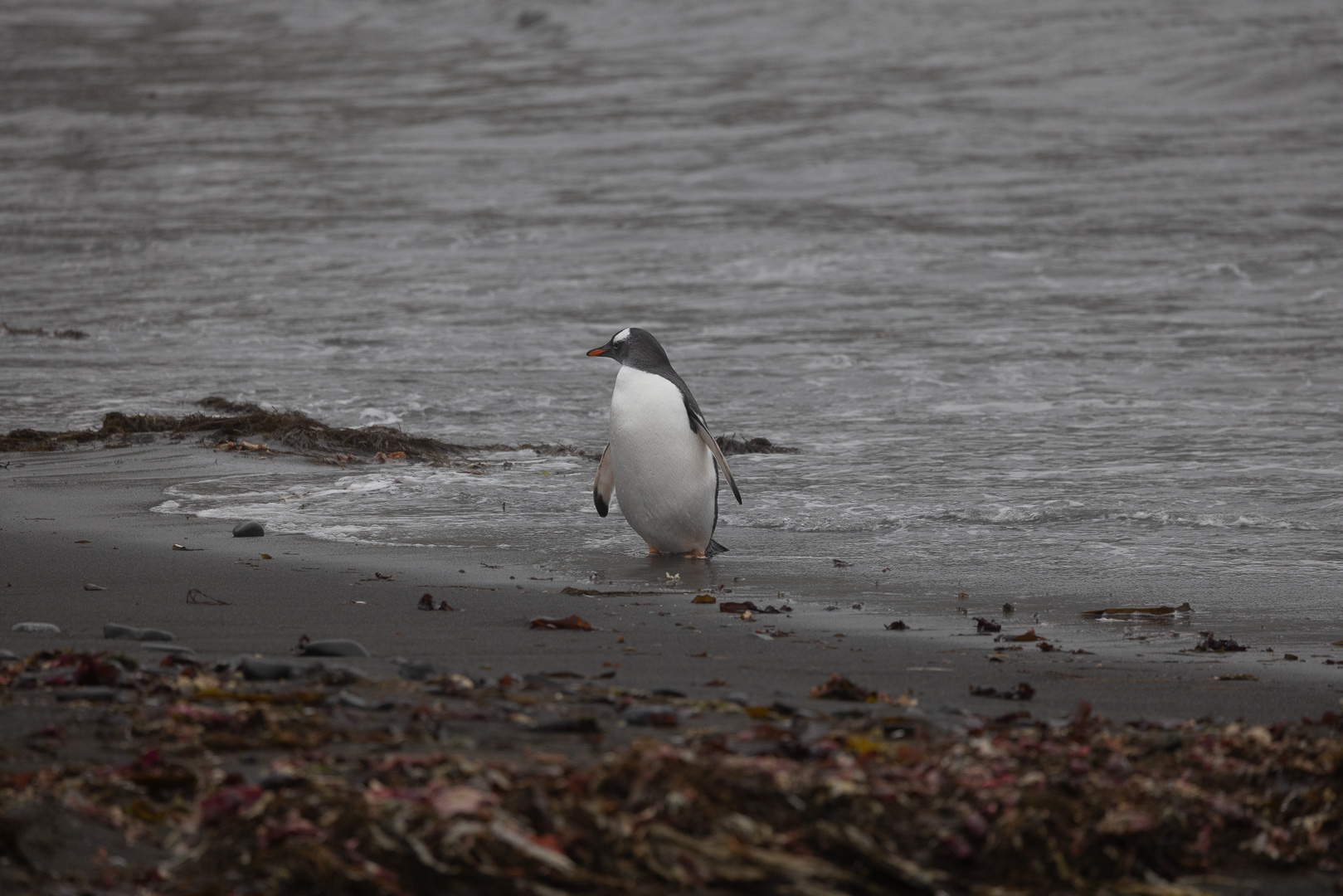 Eine kleine Schwierigkeit stellte hier dar, dass wegen des dichten Nebels mit zeitweiligem Schneetreiben die Anlandestelle vom Schiff aus nicht zu sehen war, und umgekehrt das Schiff auch nicht für die zurückkehrenden Zodiaks. Diese wurden per Funk vom Schiff aus dirigiert.