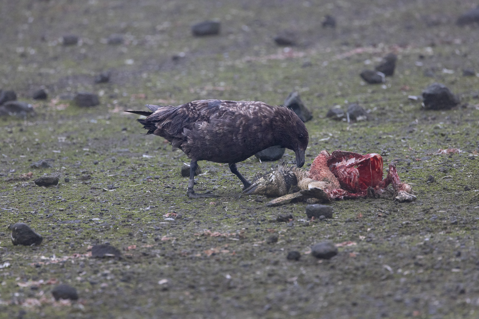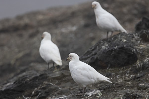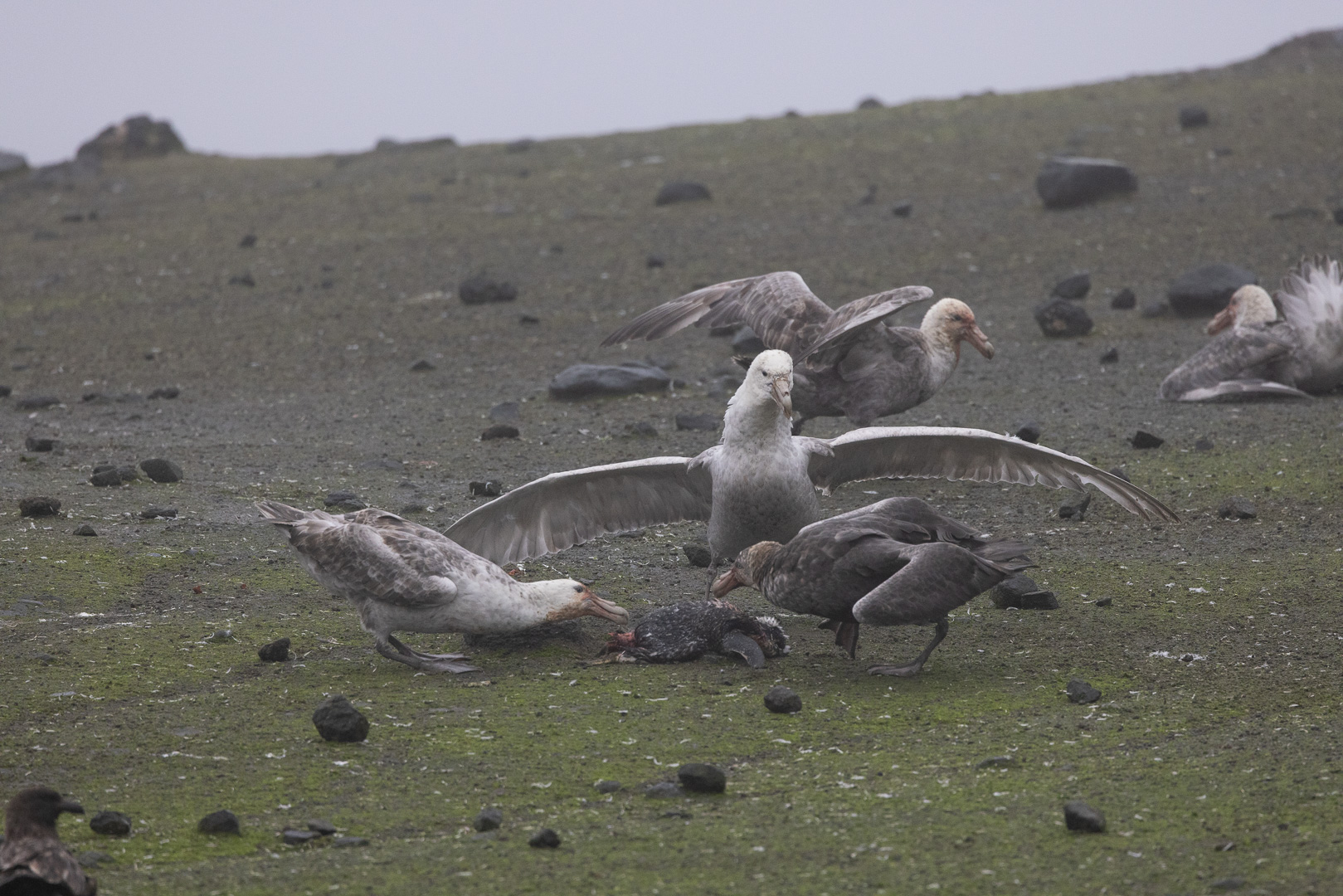Riesensturmvögel im Streit um einen Pinguin-Kadaver Riesensturmvögel ernähren sich überwiegend von Aas