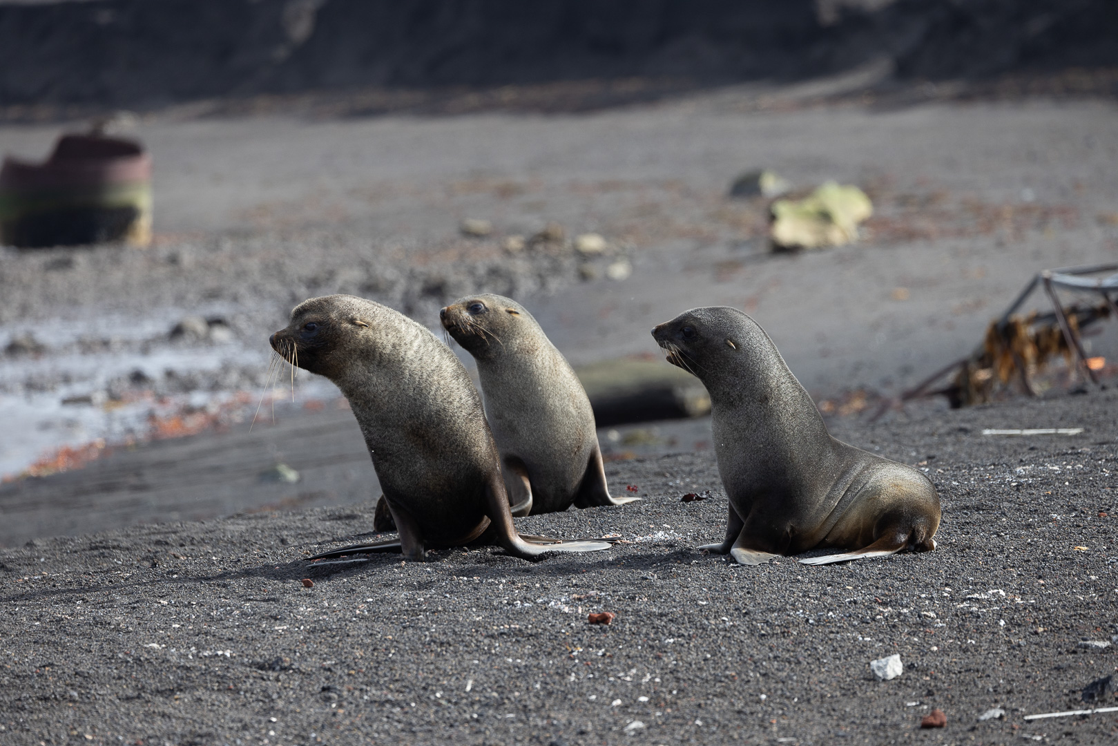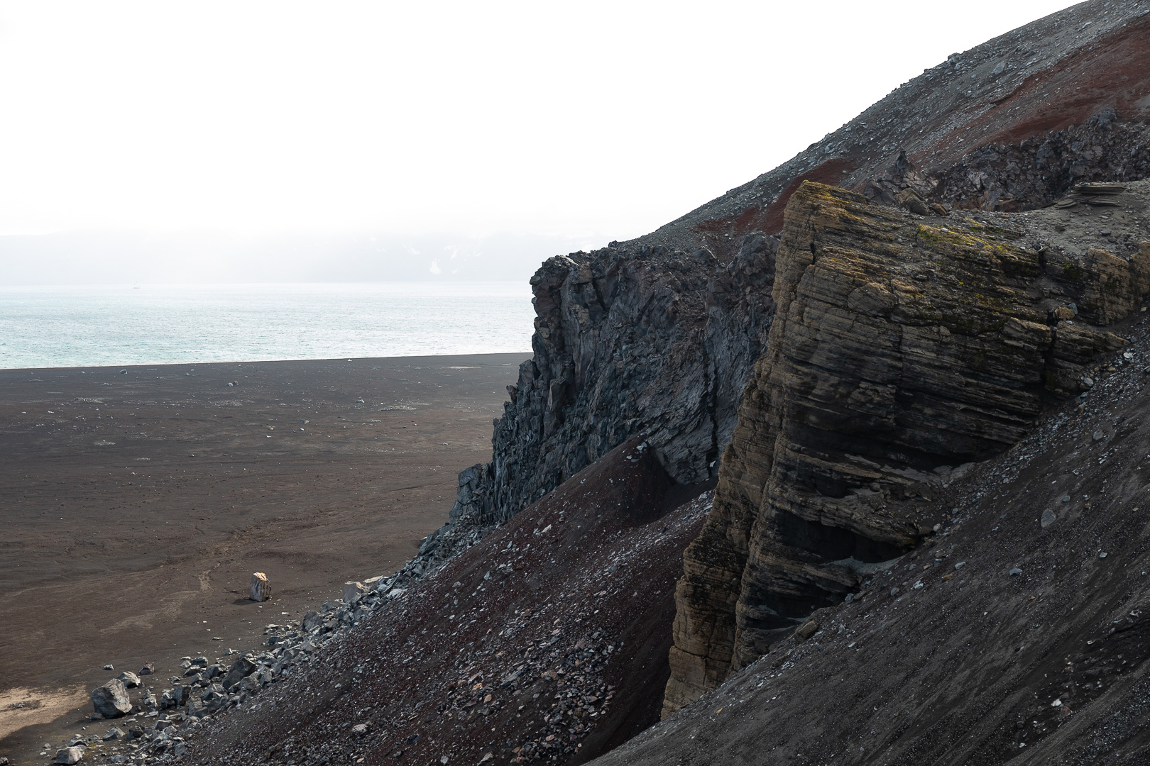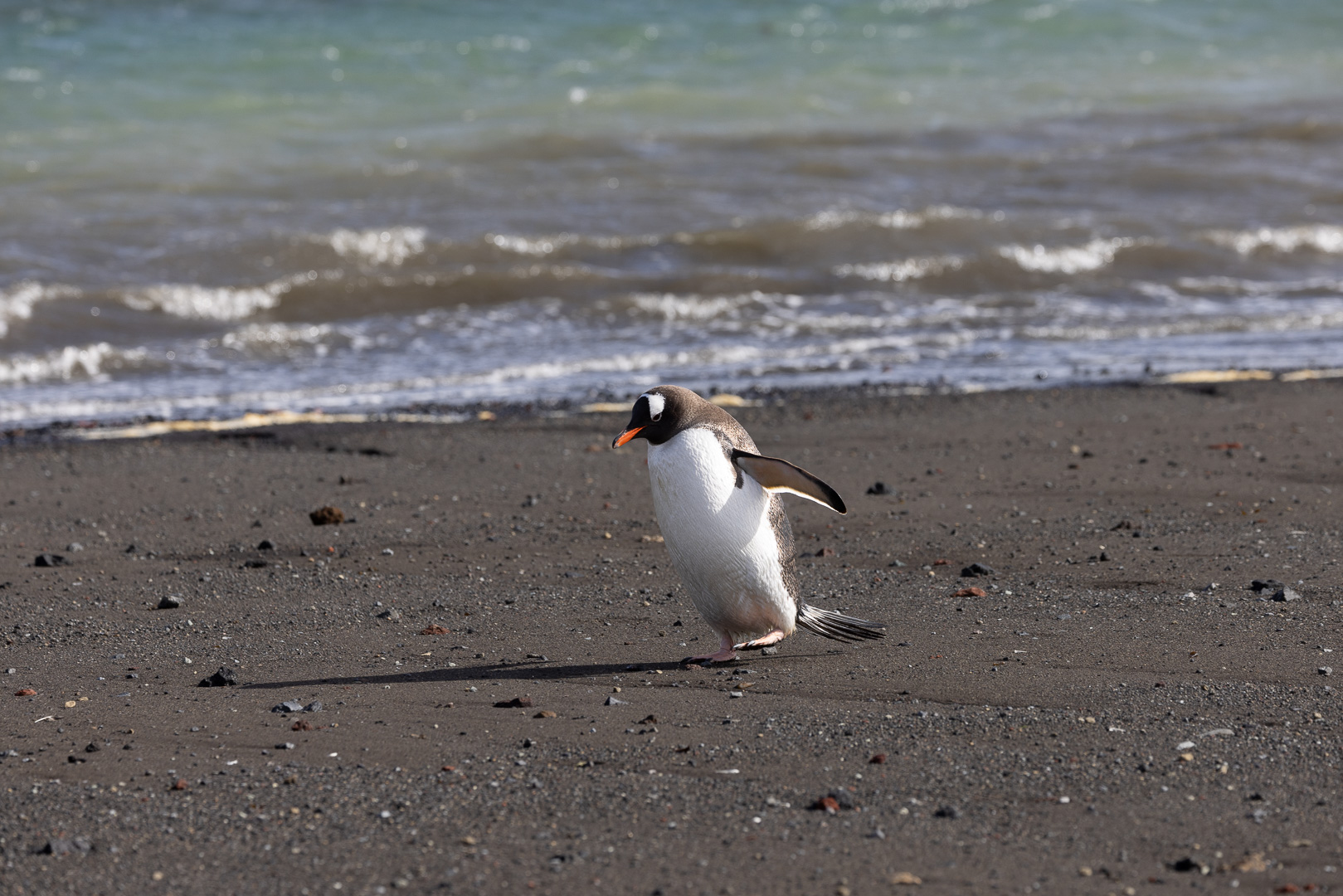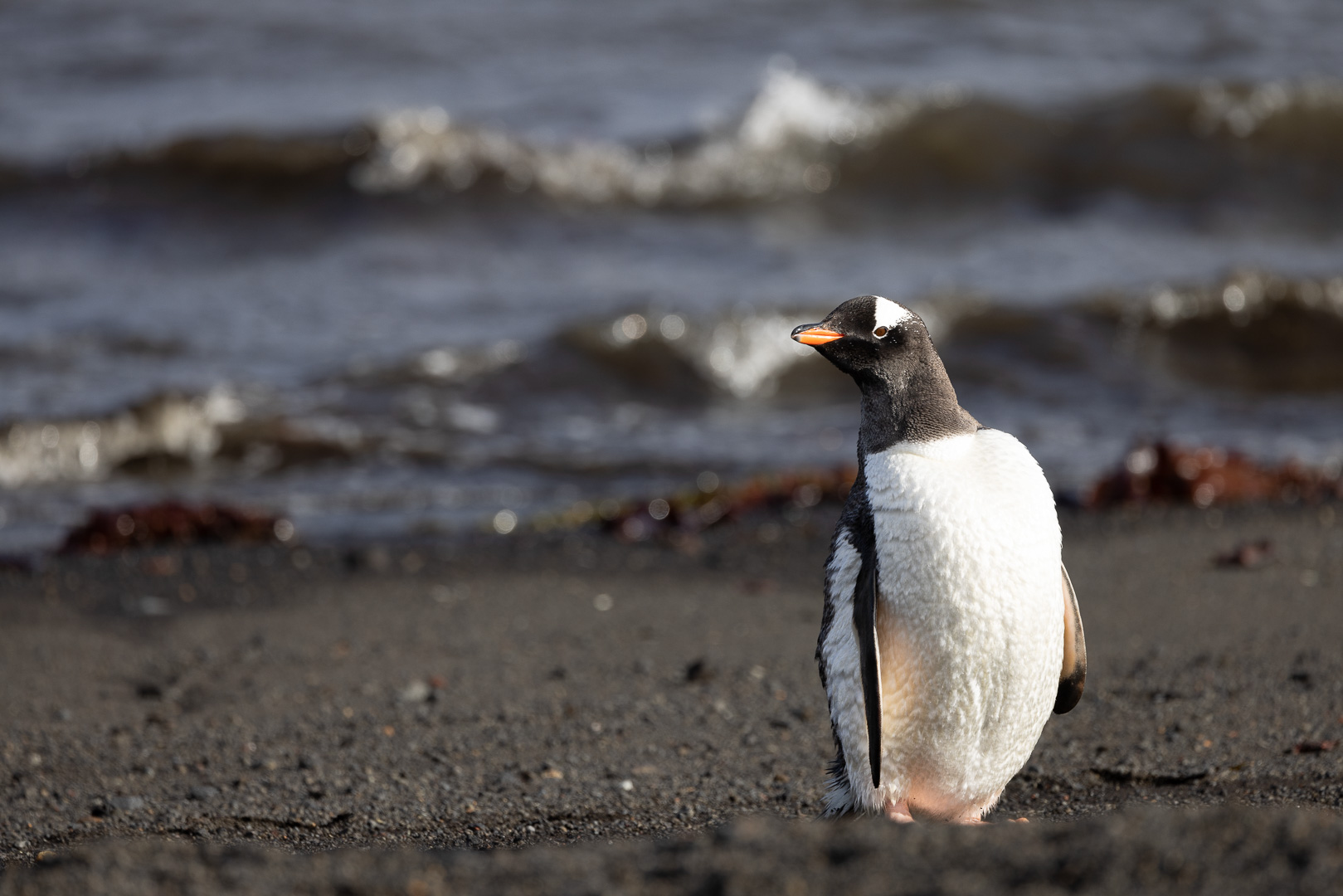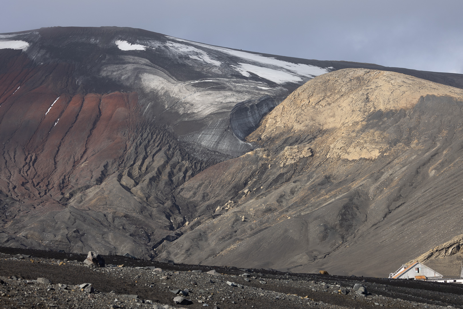 selbst den Eselspinguinen ist der Wind zu heftig und sie ziehen sich in eine Kuhle zurück. Im Hintergrund Neptuns Bellow