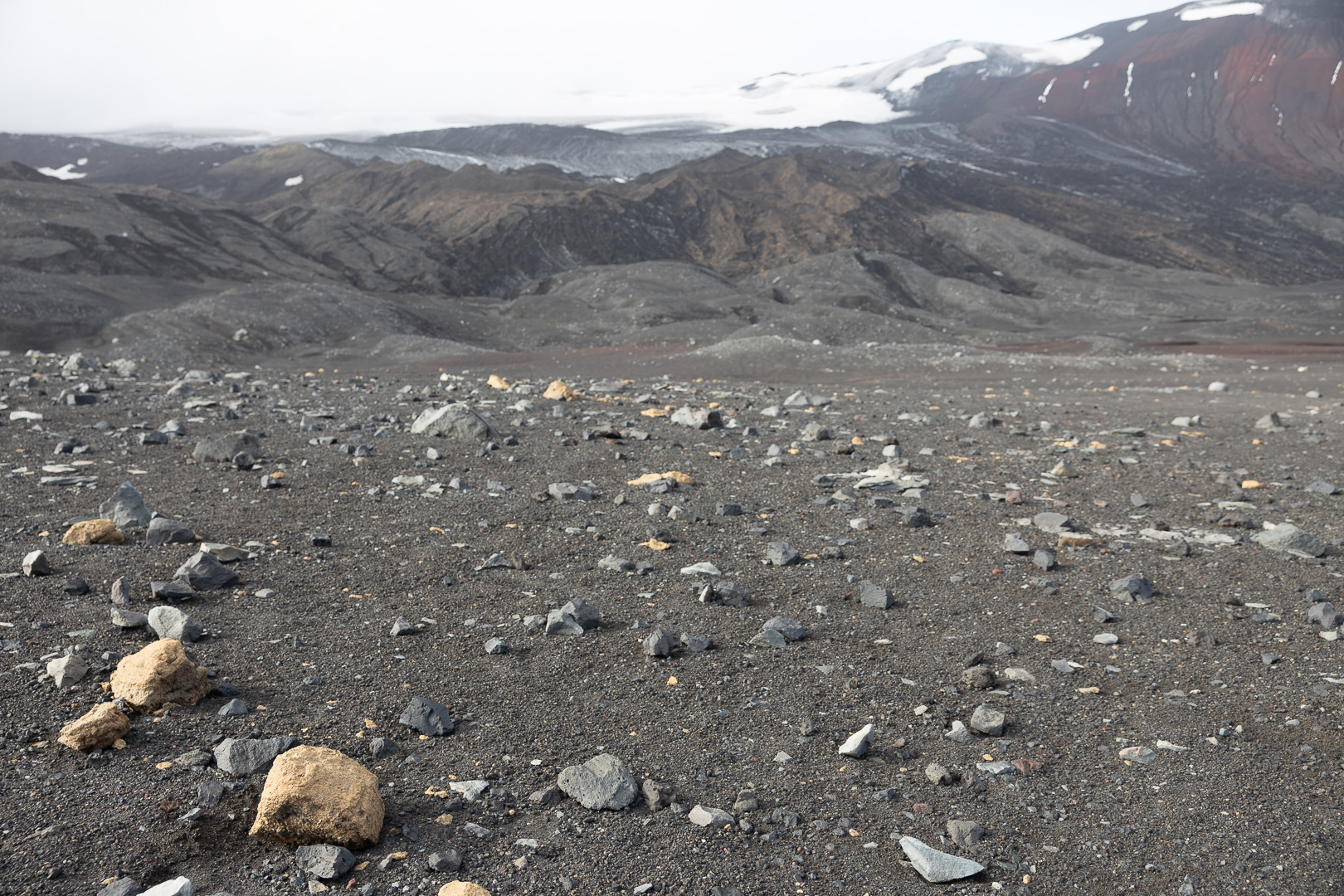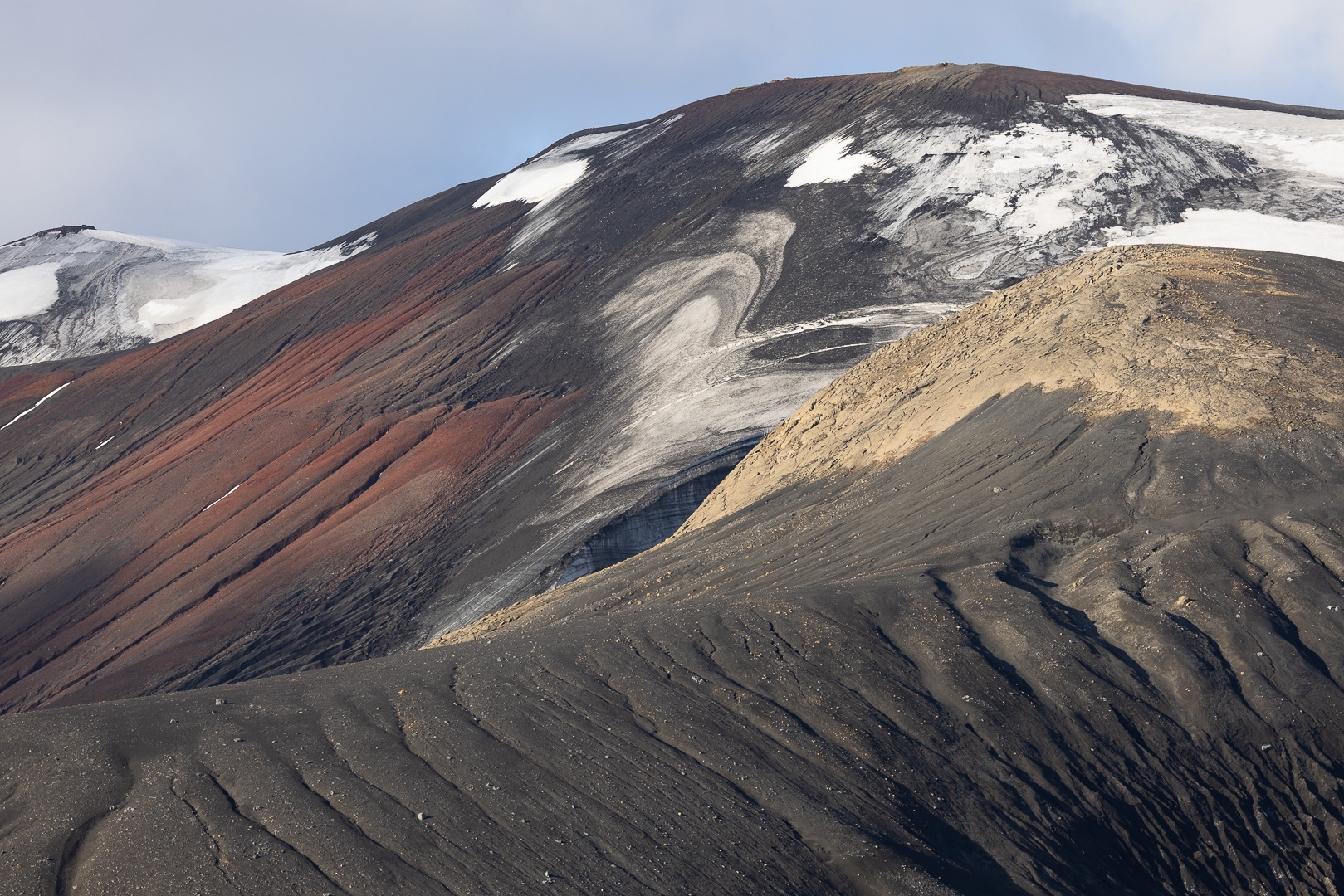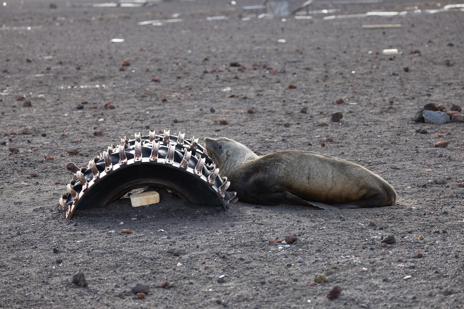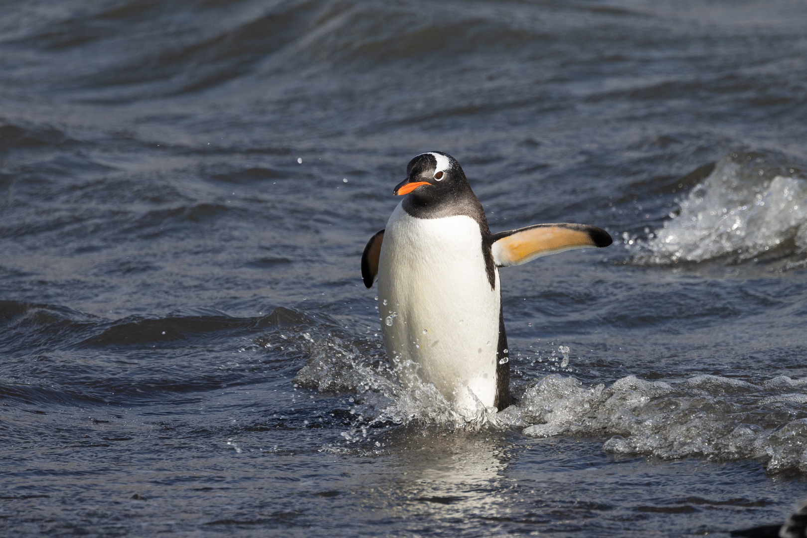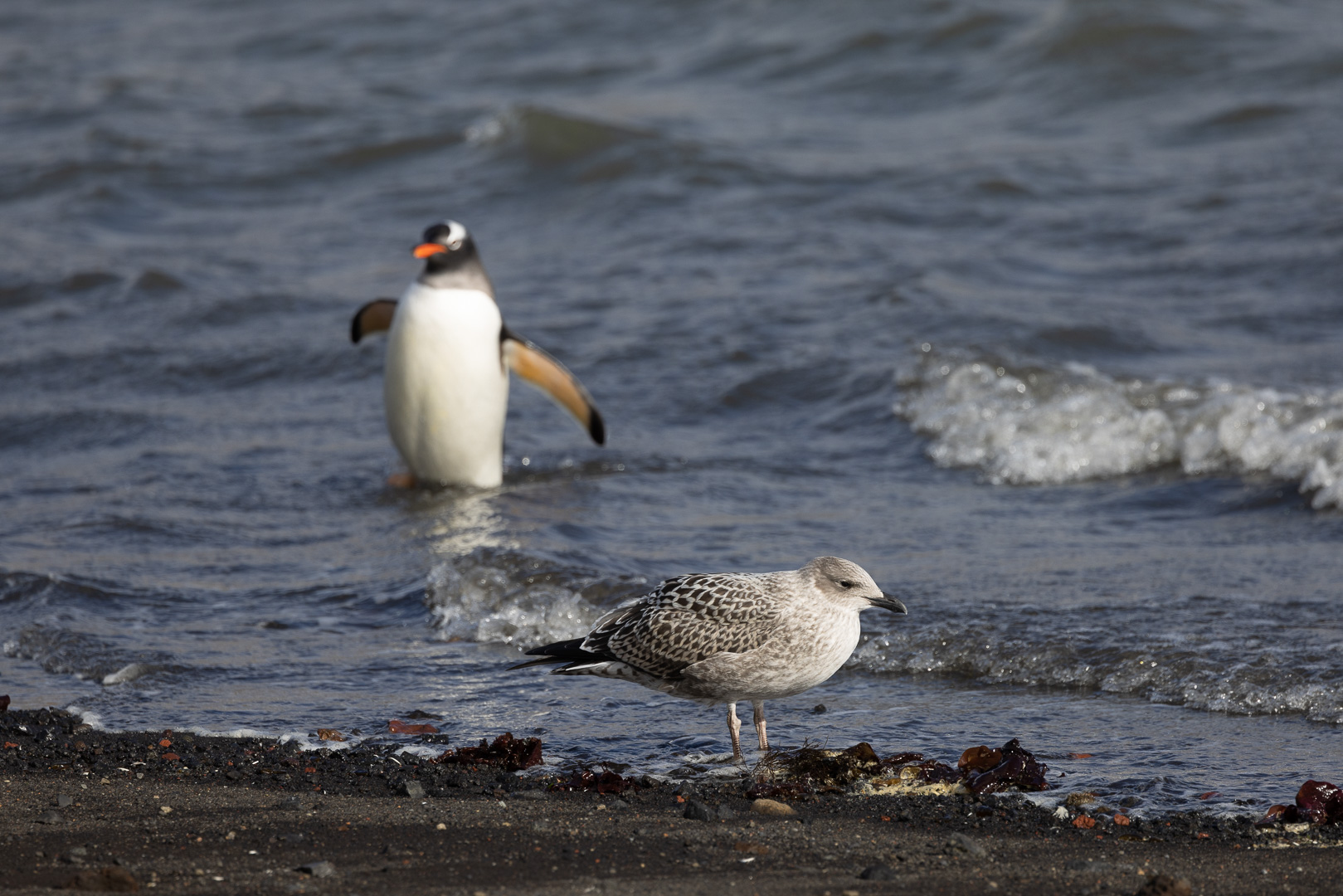 selbst den Eselspinguinen ist der Wind zu heftig und sie ziehen sich in eine Kuhle zurück. Im Hintergrund Neptuns Bellow