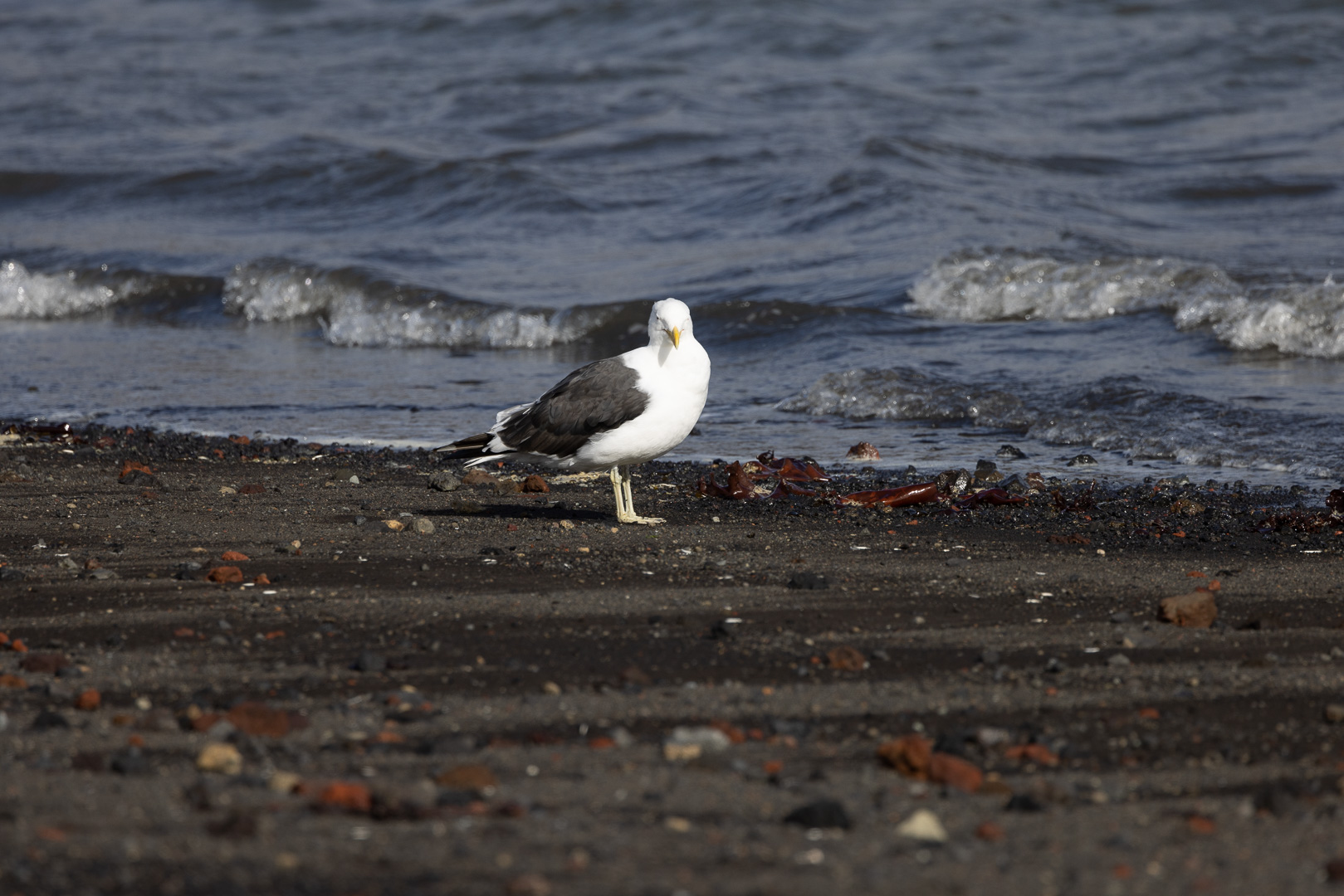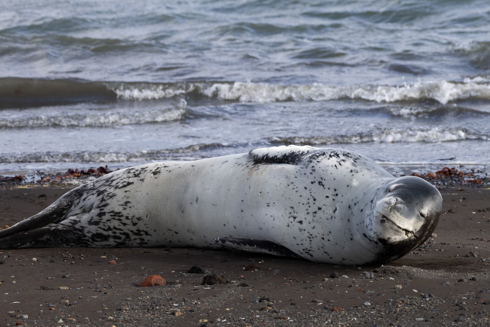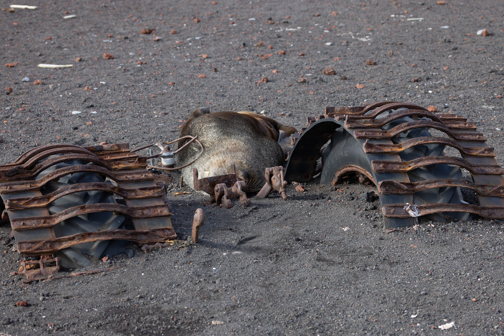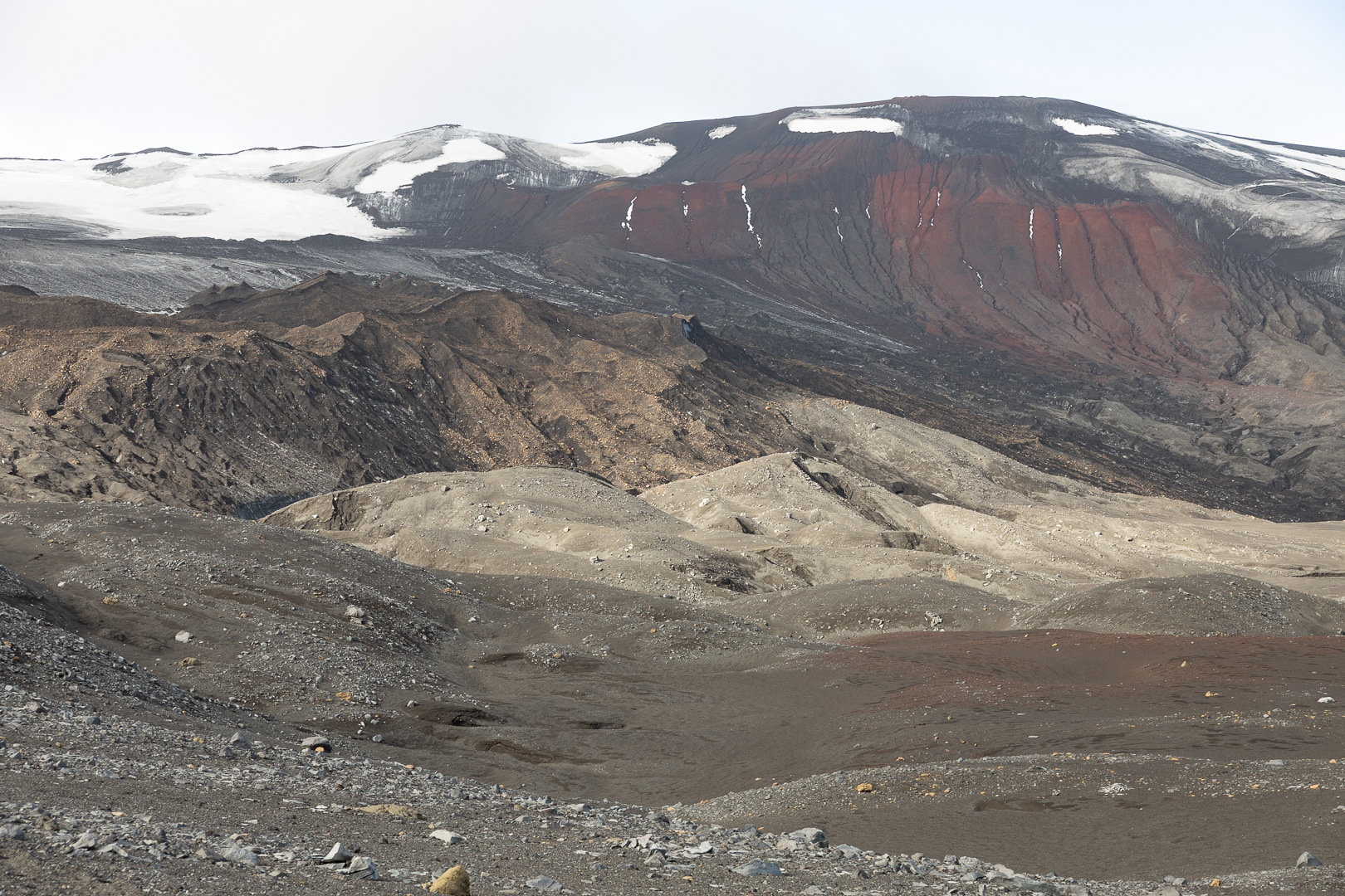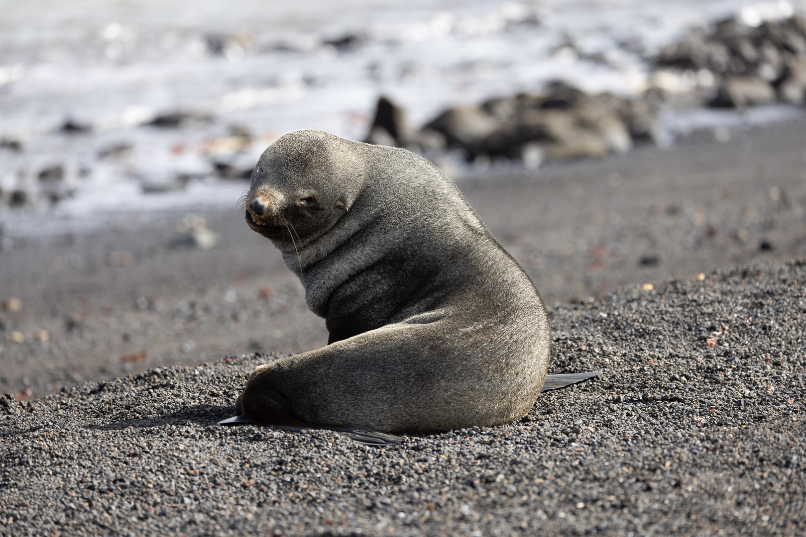 selbst den Eselspinguinen ist der Wind zu heftig und sie ziehen sich in eine Kuhle zurück. Im Hintergrund Neptuns Bellow
