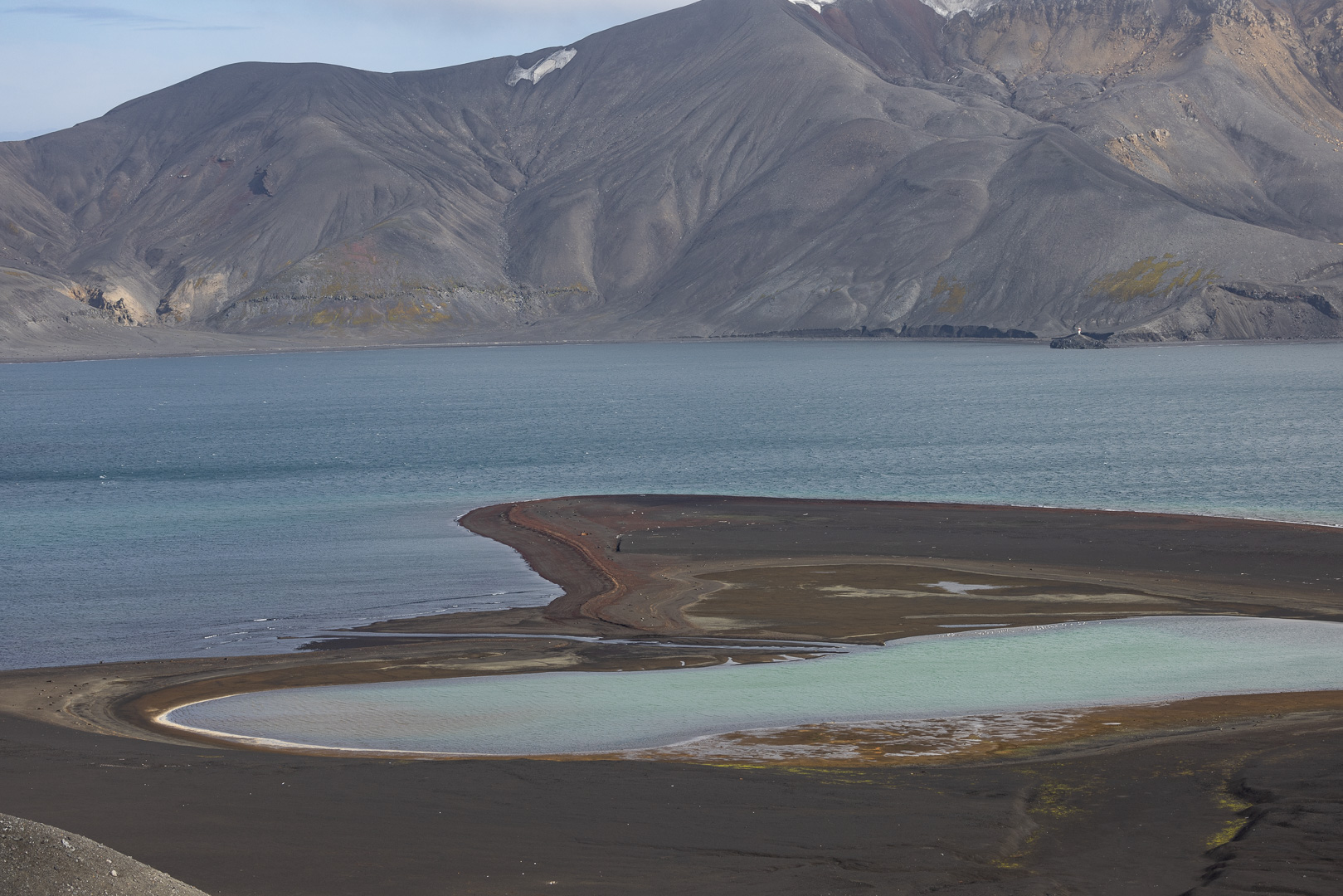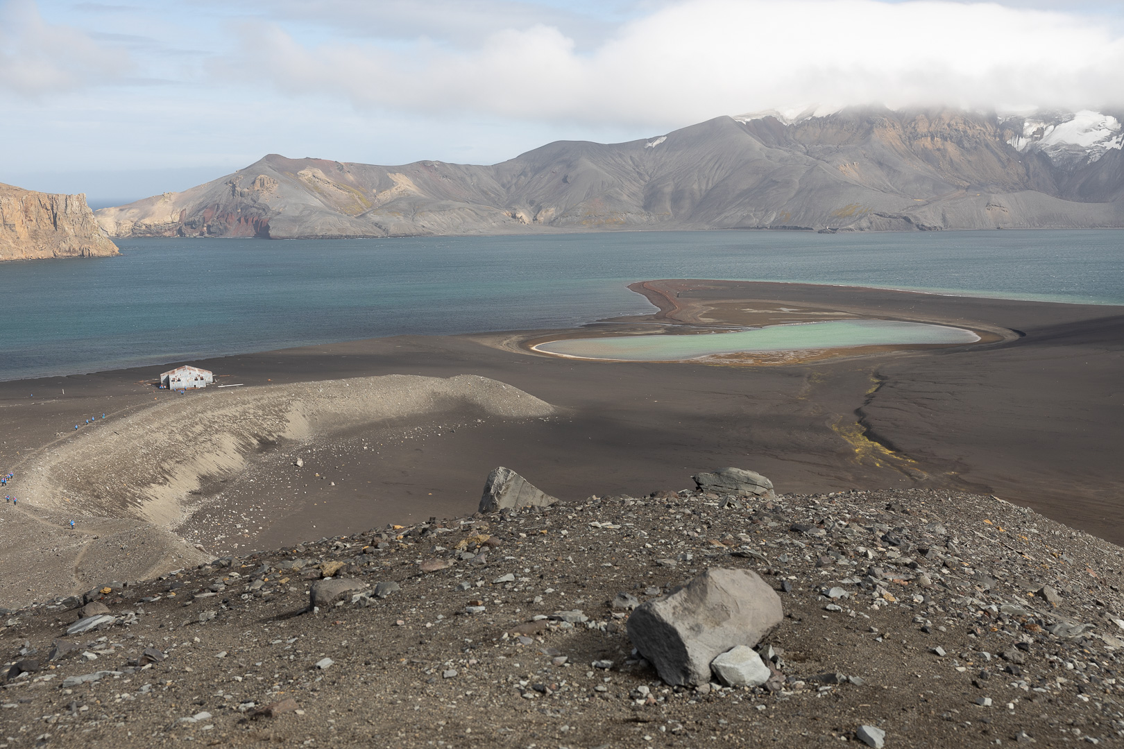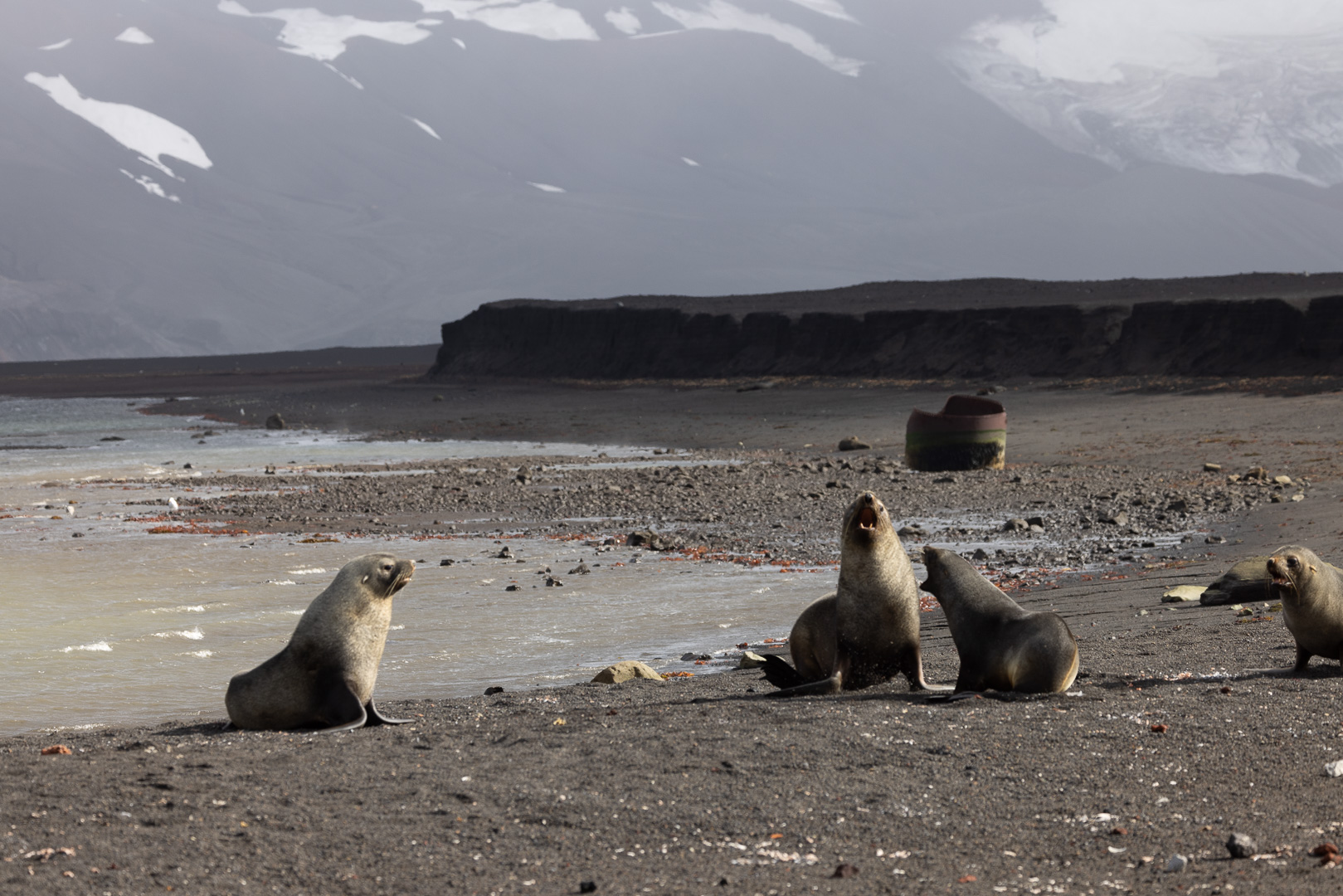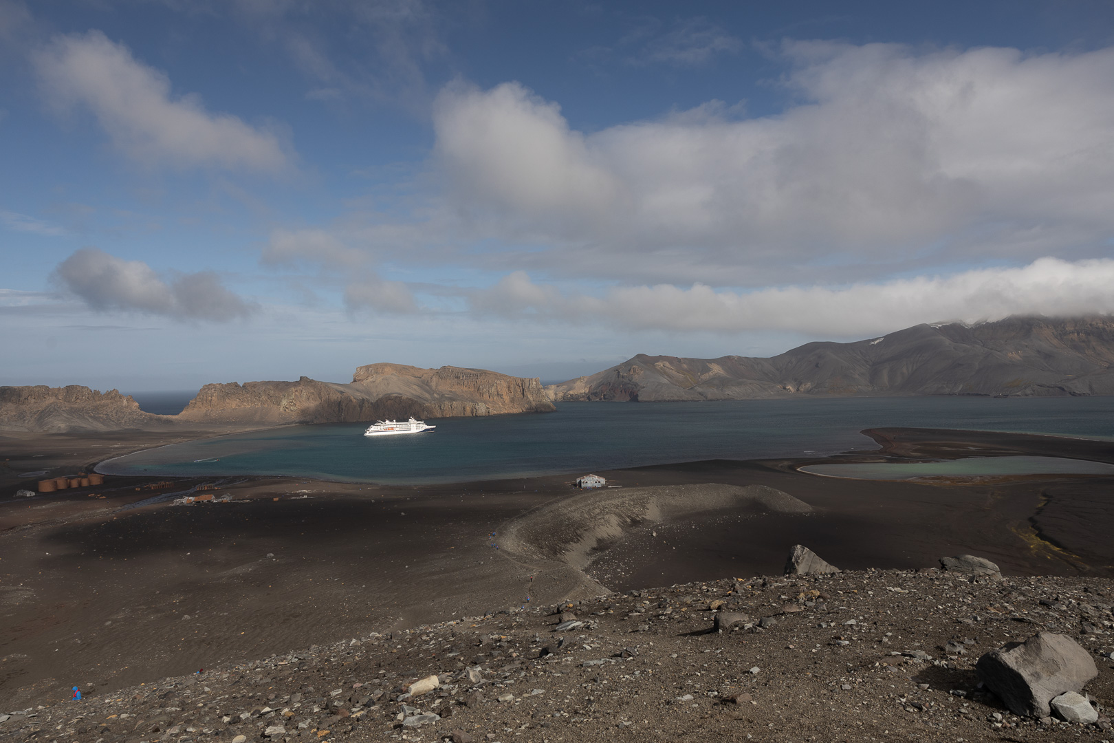 Die wahrscheinlich interessanteste Insel der Süd Shetlands ist Deception Island. Es handelt sich um einen grossen aktiven Vulkan, dessen Caldera an einer Seite eingebrochen ist, so dass der Krater vom Meer geflutet ist, Schiffe können in das Kraterinnere fahren, der Eingang ist relativ eng und heisst wegen der starken Winde Neptuns Bellow (Neptuns Blasebalg, in manchen Seekarten auch Dragons Mouth oder Hells Gate). Am Rand des Kratersees lagen mehrere Forschungsstationen, die von den letzten Ausbrüchen zerstört wurden, mit viel Glück ohne Todesopfer, der letzte Ausbruch war 1970. Keine der Stationen – die nicht nur der Forschung, sondern der Demonstration der Gebietsansprüche dienten und die britische ursprünglich dem Walfang – ist derzeit noch dauerhaft besetzt, die noch vorhandenen Reste der argentinischen Station wurde als Refugio eingerichtet. Der Vulkan wird seismisch überwacht, so dass die Zufahrt bei zunehmender seismischer Aktivität gesperrt werden kann.