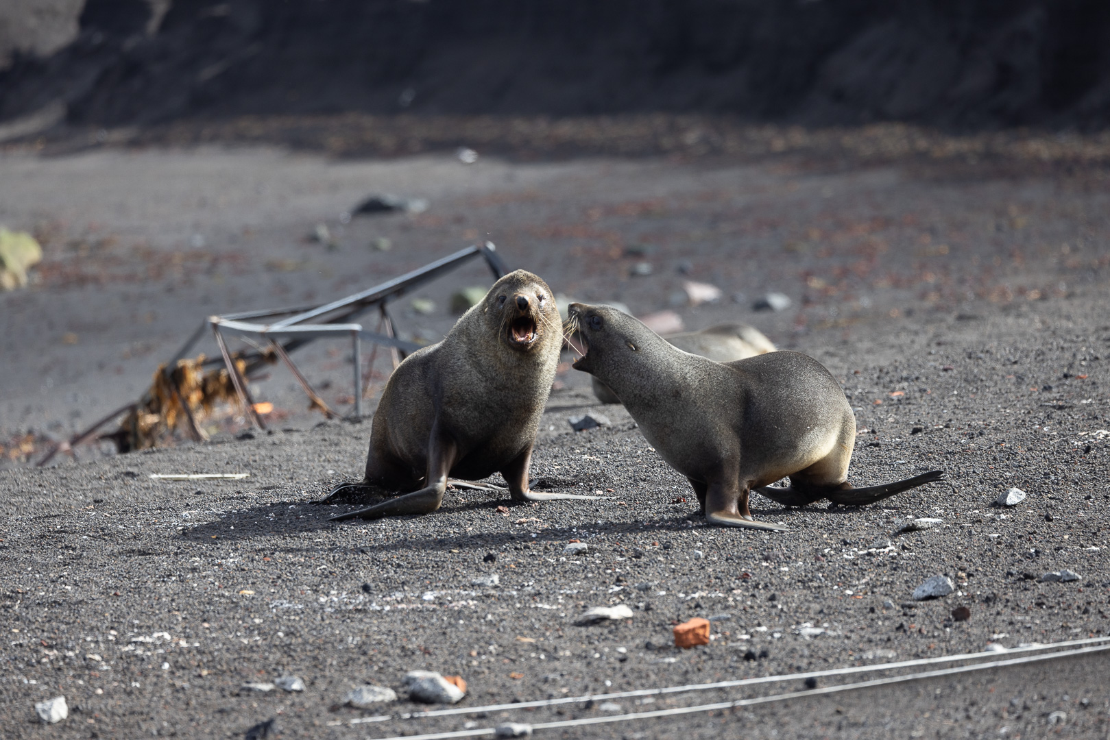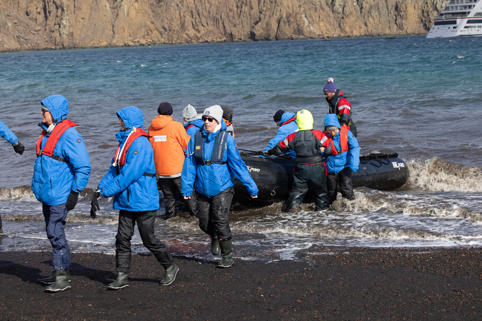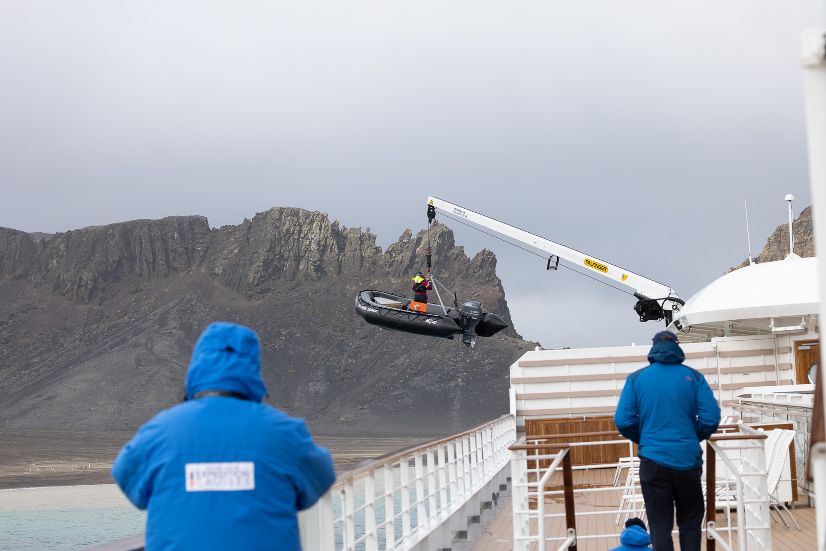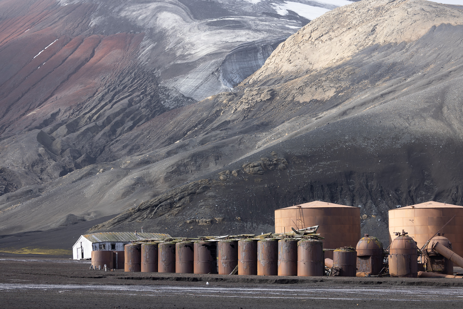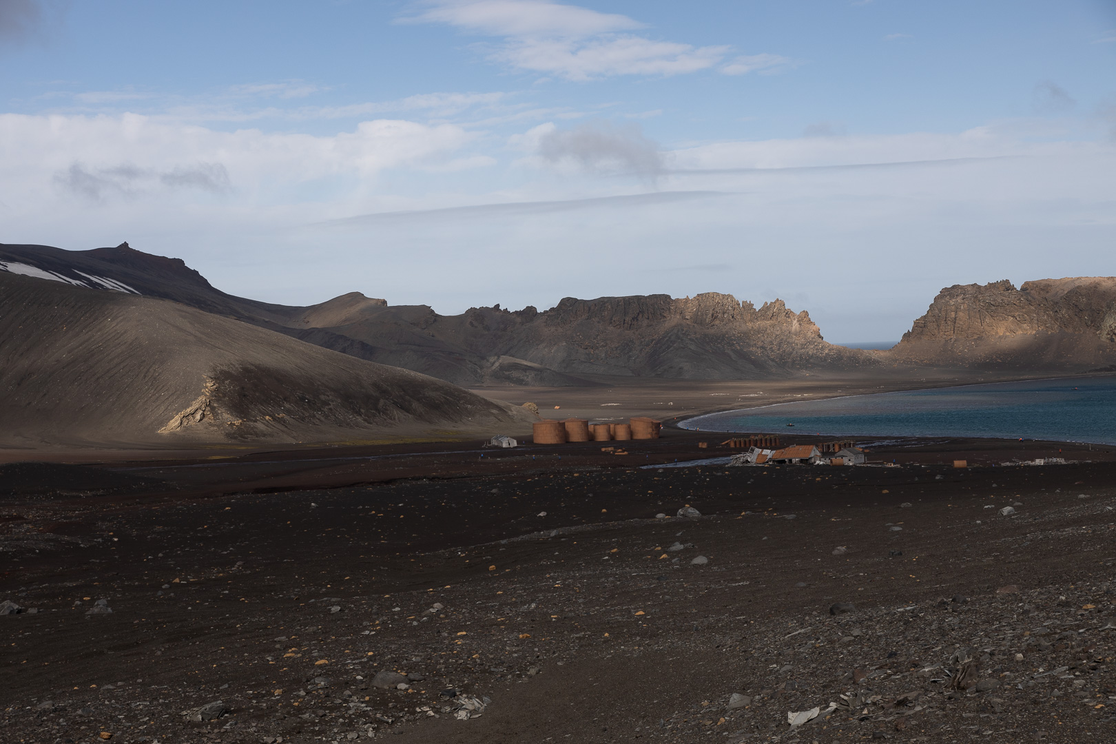 Die wahrscheinlich interessanteste Insel der Süd Shetlands ist Deception Island. Es handelt sich um einen grossen aktiven Vulkan, dessen Caldera an einer Seite eingebrochen ist, so dass der Krater vom Meer geflutet ist, Schiffe können in das Kraterinnere fahren, der Eingang ist relativ eng und heisst wegen der starken Winde Neptuns Bellow (Neptuns Blasebalg, in manchen Seekarten auch Dragons Mouth oder Hells Gate). Am Rand des Kratersees lagen mehrere Forschungsstationen, die von den letzten Ausbrüchen zerstört wurden, mit viel Glück ohne Todesopfer, der letzte Ausbruch war 1970. Keine der Stationen – die nicht nur der Forschung, sondern der Demonstration der Gebietsansprüche dienten und die britische ursprünglich dem Walfang – ist derzeit noch dauerhaft besetzt, die noch vorhandenen Reste der argentinischen Station wurde als Refugio eingerichtet. Der Vulkan wird seismisch überwacht, so dass die Zufahrt bei zunehmender seismischer Aktivität gesperrt werden kann.