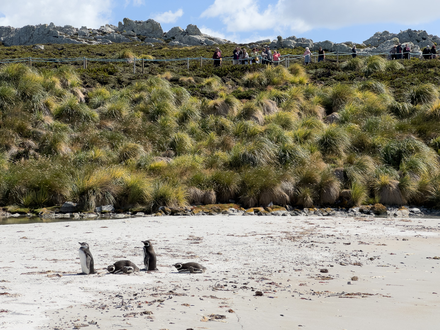 Touristische Hauptattraktion - neben der Stadt selbst - ist die Gypsy Cove und Yorke Bay. Man kann in der Yorke Bay am Strand entlanggehen (und mit Glück Pinguine sehen), Gypsy Cove ist geschützt und kann nur von oben betrachtet werden. Hier sieht man Magellan-Pinguine nebst ihren Bruthöhlen im Hang. Auf einer Antarctis-Schiffstour sieht man diese Pinguinart sonst nirgens mehr (höchstens beim Abfahrtsort Ushuaia). Weitere Erkundungen der Inseln bleiben dem Antarctis-Kreuzfahrer in der Regel aus Zeitgründen verwehrt, und wenn - wie bei uns - gleichzeitig ein grosses Kreuzfahrtschiff mit mehreren tausend Passagieren anlegt, kann auch der Transport zur Gypsy Cove erschwert sein. Wenn man mehr Zeit hat, kann man dorthin natürlich auch wandern.