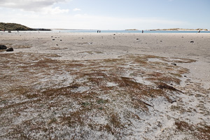 der Weg verläuft oberhalb des Strandes bis zu einem Durchgang zum Strand, der Zaun soll den Hang mit Tussock-Gras schützen, weil dort Pinguine brüten. Ein Grossteil der Touristen ignoriert das - auch nach Ermahnung durch Aufseher - und klettert über den Zaun