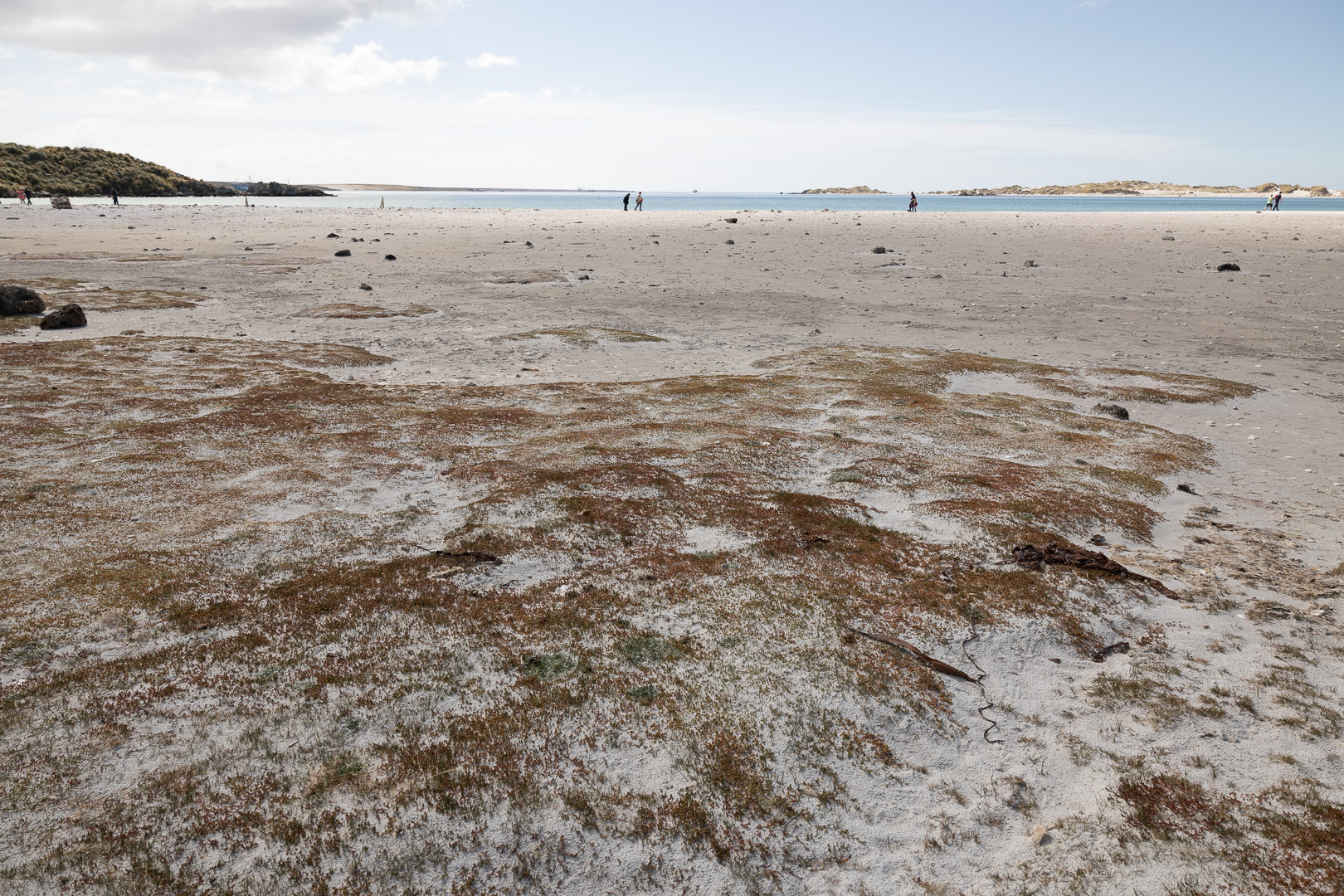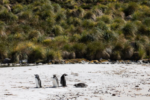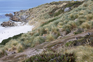 Tussock-Gras findet man nur noch an wenigen Stellen auf den Inseln, es wurde wegen der Beweidung durch Schafe weitgehend zerstört. Interessanterweise steht im Wappen der Falklans ein Schaf auf einem Tussock-Büschel