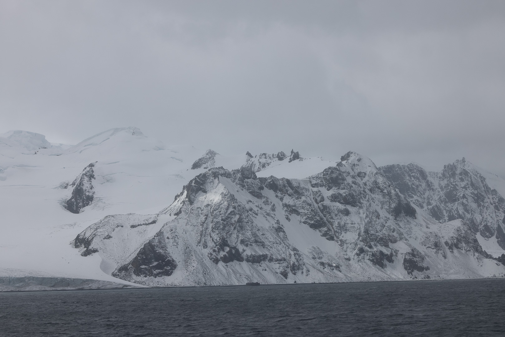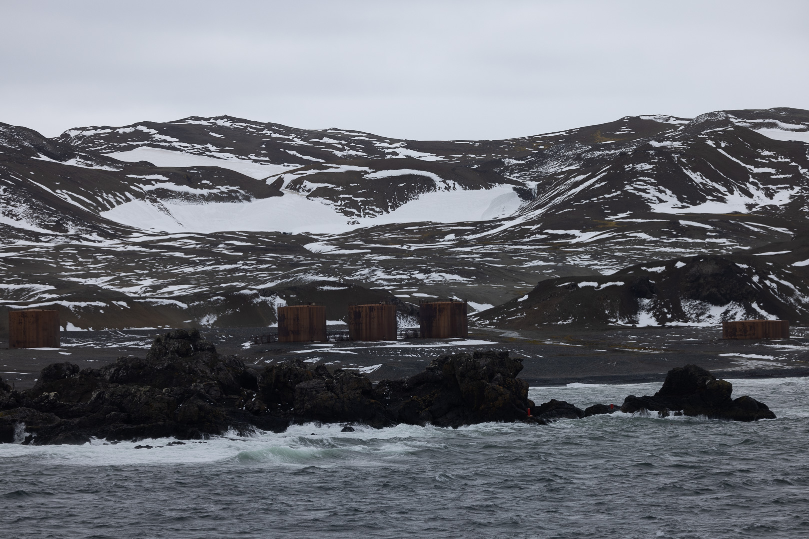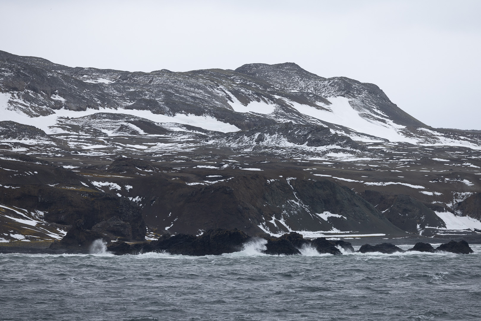 King George Island ist die grösste Insel des Archipels und hat eine hohe Dichte an Forschungsstationen. Unser Besuch dort war eigentlich nicht geplant, sondern bedingt durch die Notwendigkeit, eine schwer erkrankte Passagierin/Passagier per Flugzeug zu evakuieren, was von hier aus möglich ist, ein Flugfeld findet sich an der chilenischen Station. Neben der chilenischen Station liegt die russische mit der südlichsten orthodoxen Kirche der Welt. Ein Besuch der Station wurde nicht gestattet, der alternative Zodiak cruise war wegen des starken Winds und Wellengangs leider auch nicht möglich, lediglich der Patient konnte an Land gebracht werden.