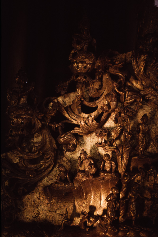 Am morgen werden wir als Service des Hauses von den servierenden Jungs am Frühstückstisch massiert. Dann geht’s auf zu den Besichtigungen in Mandalay. Zuerst der Shwenandaw Kyaung mit viel Holzschnitzerei, teilweise restauriert, aber recht gut. Innen einige Darstellungen des Jataka aus den letzten Leben des Buddha einschließlich als Siddharta. Das Gebäude