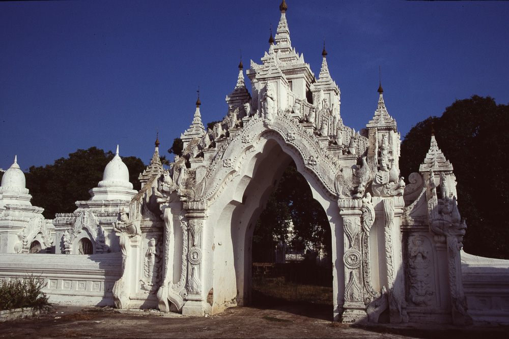 im Geviert um die zentrale Stupa, die nach dem Vorbild der Shwezigon von Bagan gebaut ist. Die Texte entstanden in 8 Jahren nach 1872, zweitausend
