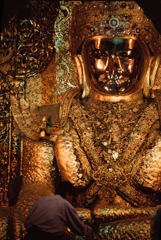 Maha Muni ist nach der Shwedagon – Pagode das bedeutendste buddhistische Heiligtum für Burmesen. Die Statue ist fast 2000 Jahre alt,