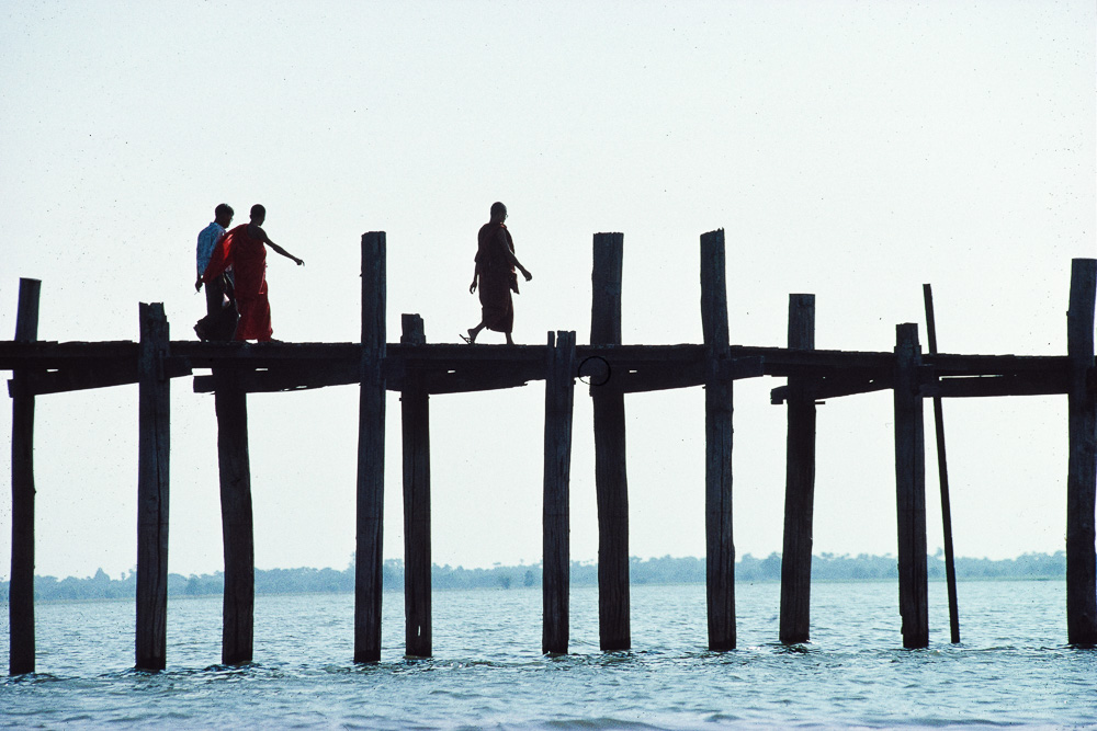 Nach dem Lunch fahren wir nach Amarapura und überqueren zu Fuß die U Bein Brücke, die längste Teakholzbrücke der Welt.