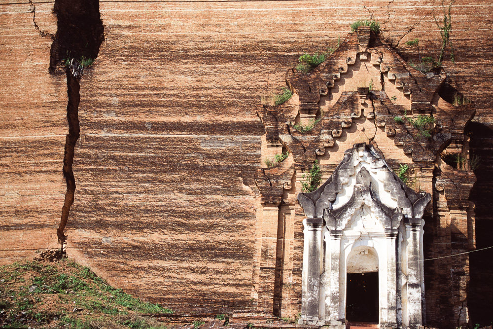 Beherrscht wird das Gelände von der großen Mingun Pagode (Mantara Gyi Pagode), die von der Ferne wie ein Hügel aussieht, erst beim Näherkommen