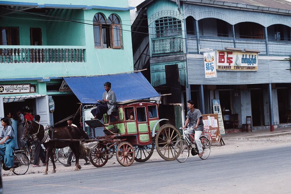 In Pyin Oo Lwin stehen noch viele alte Kolonialvillen, teilweise gut hergerichtet, lauter Kolonialbauten an der Hauptstraße, einige der typischen Kutschen sind