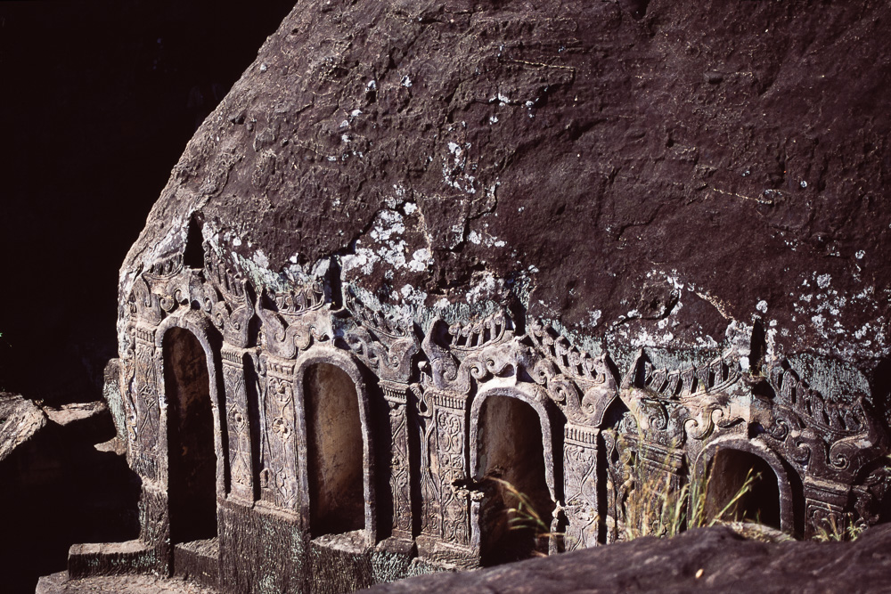viele Grotten, zumindest die meisten von Menschenhand geschaffen, eventuell sind auch vorhandene Grotten ausgearbeitet worden.In den Grotten Buddhastatuen, die