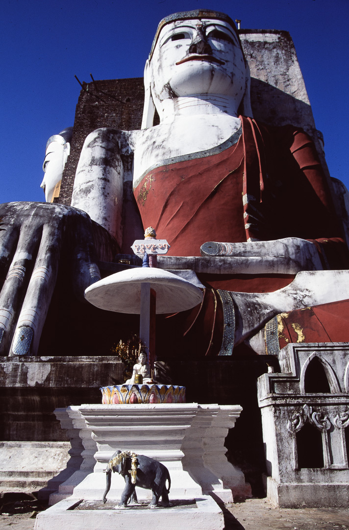 Kyaik Pun Pagode. Die 4 nach den vier Himmelsrichtung blickenden sitzenden Buddha - Figuren von 30 m Höhe sehen eindrucksvoll aus, sie stellen