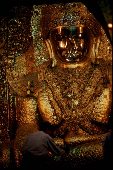 Maha Muni ist nach der Shwedagon – Pagode das bedeutendste buddhistische Heiligtum für Burmesen. Die Statue ist fast 2000 Jahre alt,