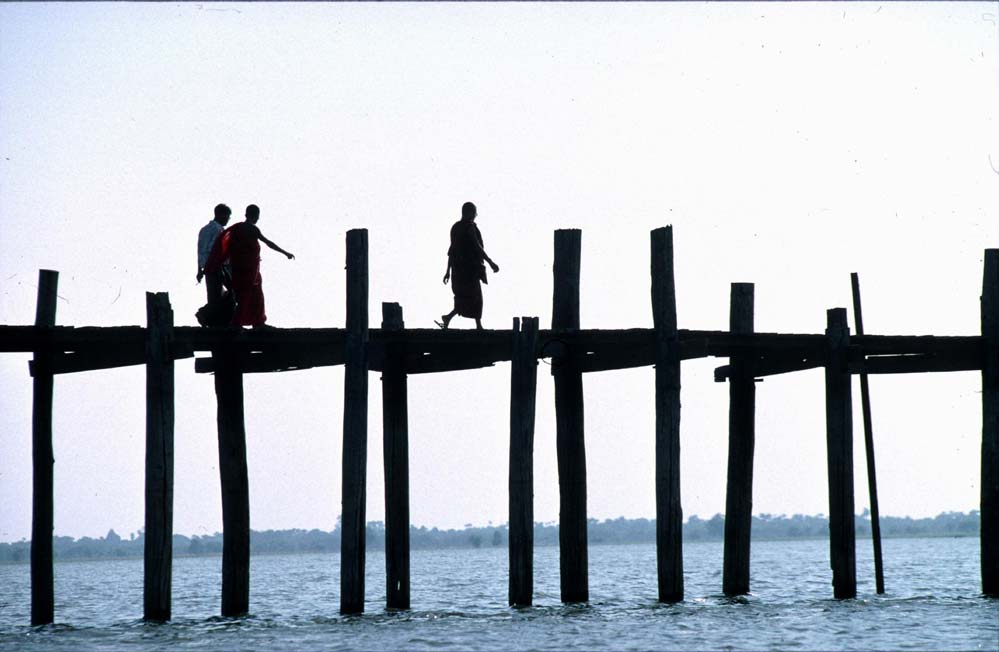 Nach dem Lunch fahren wir nach Amarapura und überqueren zu Fuß die U Bein Brücke, die längste Teakholzbrücke der Welt.