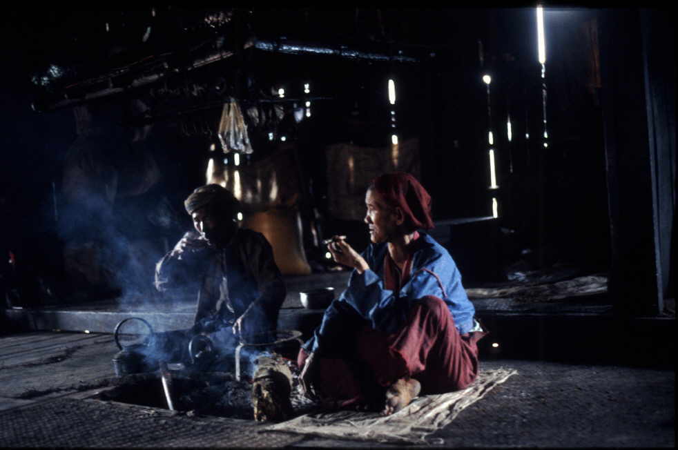 Links in der Hütte sitzt ein altes Paar am Feuer, sie mit Pfeife, und läßt das ganze stoisch über sich ergehen. Rechts in dem Haus, wo man auch Cola kaufen kann, wird uns das