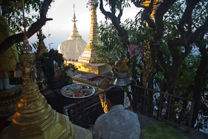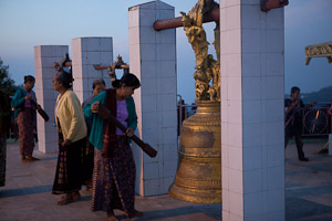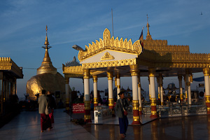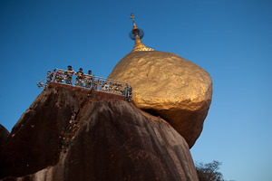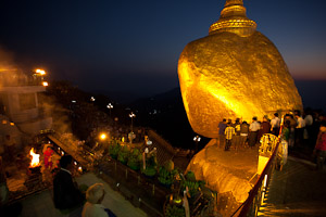 Der Goldene Fels ist einer der heiligsten Orte von Myanmar, wenn nicht für viele der überhaupt heiligste. Überall im Land finden sich kleinere Kopien des goldenen Felsen an anderen heiligen Orten. Jeder burmesische Buddhist strebt an, wenigstens einmal diesen heiligen Berg zu besuchen und auch über Myanmar hinaus ist der Fels ein Anziehungspunkt für buddhistische Pilger. Die Straße von Yangon aus ist inzwischen so gut, dass auch ein Tagesausflug denkbar ist, empfehlenswert ist dies allerdings nicht, denen die schönste Stimmung am Felsen ist abends und morgens. Wenn man dies erleben will, sollte man oben am Berg übernachten. Das relativ vernichtende Urteil über diese Unterkünfte im Lonely Planet kann ich übrigens nicht nachvollziehen.