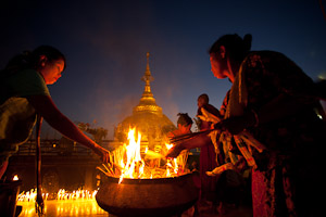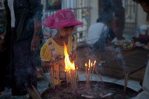 Wenn es dunkel wird, entfaltet sich der Zauber des Ortes mit brennenden Lichtern und Räucherstäbchen, meditierenden und anbetenden Laien und Mönchen. Auch früh morgens hat der Ort einen besonderen Zauber, im weichen Morgenlicht werden vor allem Wasseropfer und Opfer mit Nahrungsmitteln und Kokosnüssen dargebracht. Es sieht teilweise aus, als sei hier das Frühstück für eine Gruppe auf Tabletts bereitgestellt.