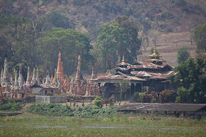 Bis vor kurzem war es nur möglich, die Stadt Loikaw selbst zu besuchen und zwar mit dem Flugzeug, inzwischen konnten wir mit dem Boot über den Inle-See und den nach Süden anschliessenden Stausee bis Phae Khone und von dort aus mit dem Fahrzeug weiter nach Loikaw fahren. Angekommen in Phae Khone sind allerdings insgesamt 5 Behörden zu konsultieren, die Pässe und Special Permit kontrollieren.Die Bootsfahrt lohnt sich, man fährt an kleinen Dörfern vorbei, wir unterbrechen die Fahrt zum Besuch der Vorbereitungen auf ein Pagodenfest. Der Stausee ist von Wasserpflanzen nahezu (bei niedrigem Wasserstand) zugewachsen und das Boot gleitet durch die Vegetation. Noch ohne special permit erreichbar ist Sankar, eine alte Shan - Stadt, die zu grossen Teilen im See versunken ist, einschliesslich eines Teils der alten Pagode, von der einstigen Residenz ist nur noch ein kleines Dorf verblieben.