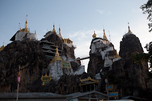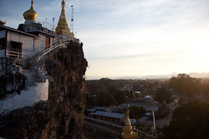 Vom Taungwe Taung aus, einem von Pagodenbauten gekrönten gespaltenen Berg am Stadtrand hat man einen schönen Ausblick über Stadt und Gegend und kann den Sonnenuntergang geniessen.