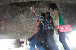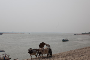 Mingun ist ein kleines Dorf flussaufwärts von Mandalay und am besten zu erreichen mit dem Boot von Mandalay aus. Je nach Jahreszeit muss man mit starken Winden rechnen, so dass die Boote nicht immer fahren, während unseres letzten Besuchs musste deswegen die Rückfahrt spätestens am frühen Nachmittag erfolgen. Von der Anlegestelle geht man die Strasse parallel zum Fluss vorbei an Verkaufsständen und Künstlerateliers. Es warten aber auch Taxis in der Form von Ochsenkarren dort.