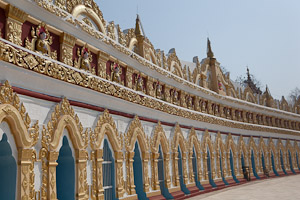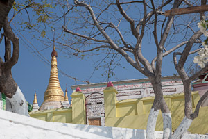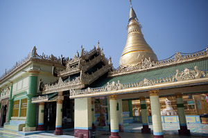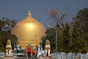 Eigentlich nicht mehr innerhalb von Sagaing an der Straße nach Monywa steht eine große Pagode in ceylonesischem Stil – die einzige in Burma –, die Kaunghmudaw Pagode. Wurde im Jahre 1636 erbaut als Erinnerung an den Aufstieg Innwas zur Hauptstadt. Nach einem lokalen Scherz diente die Brust der Königin als Vorlage für die Form des Stupa.