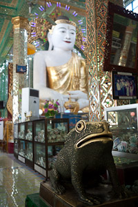 Da der Hügel, auf dem sie liegt, wie ein Frosch aussehen soll, stehen in der Soon U Ponnayashin Pagode große Frösche als Sammelboxen für Spenden. Der Stupa wurde 1312 erbaut, auch wenn der Tempel mit seiner Spiegelarchitektur aus einer neuen, kitschigen Zeit zu stammen scheint. Spiegel und Spiegelmosaiken sind besonders in Sagaing als Dekorationselemente sehr beliebt.