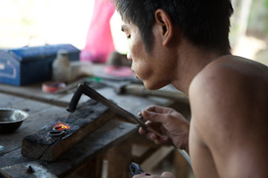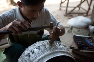 Fährt man weiter auf der Straße nach Monywa, kommt man durch die Ortschaft Ywataung, ein Zentrum der Silberschmiedekunst. In relativ einfachen Werkstätten werten Gegenstände aus Silber, Bronze so genannter Weißbronze hergestellt, von kleinen Schmuckelementen bis großen Schalen. Auch Rubine, Saphire und Jade werden in großer Zahl verarbeitet.