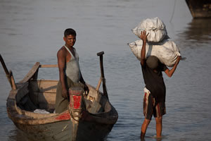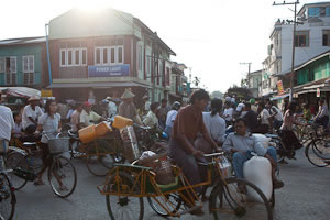 Am Hafen sieht man charakteristische Holzboote, mit denen Fracht transportiert und Menschen übergesetzt werden. Natürlich kein Vergleich mehr mit den alten Zeiten, als Sittwe ein bedeutender Hafen vor allem beim Handel mit Kalkutta war. Die Boote nach Mrauk U fahren weiter nördlich ab.