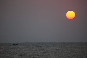 Weiter südlich, wo der Kaladan dann ins Meer übergeht, kann man baden und den Sonnenuntergang geniessen, vom Aussichtsturm oder bei einem Getränk.