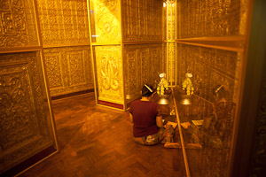 kolonialen Gebäuden, sie wirkt wie ein Fremdkörper, übriggeblieben aus einer vergangenen Zeit. Aber so ist es nicht ganz. Die Pagode ist Teil des normalen städtischen Lebens und vielfach frequentiert von Gläubigen, vor allem abends, wenn auf dem Nachhauseweg ein Halt zur Andacht eingelegt wird.
