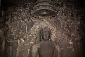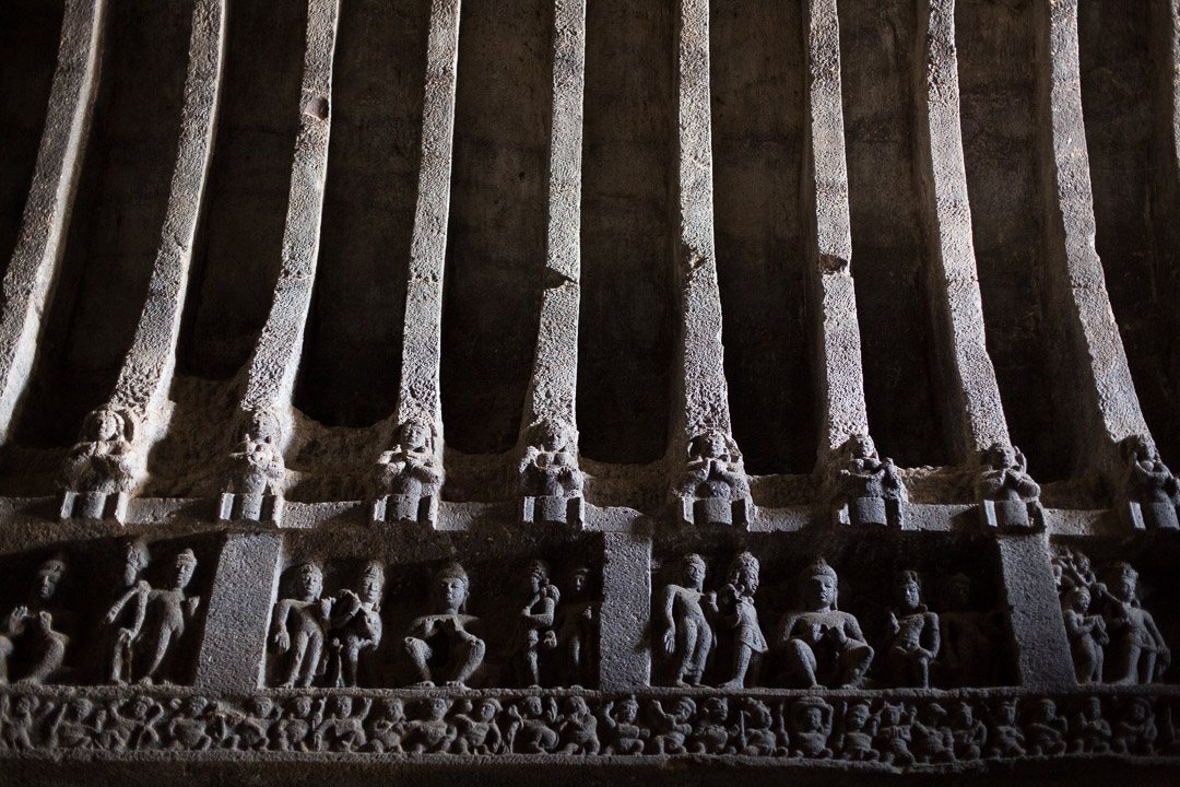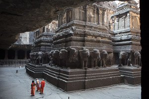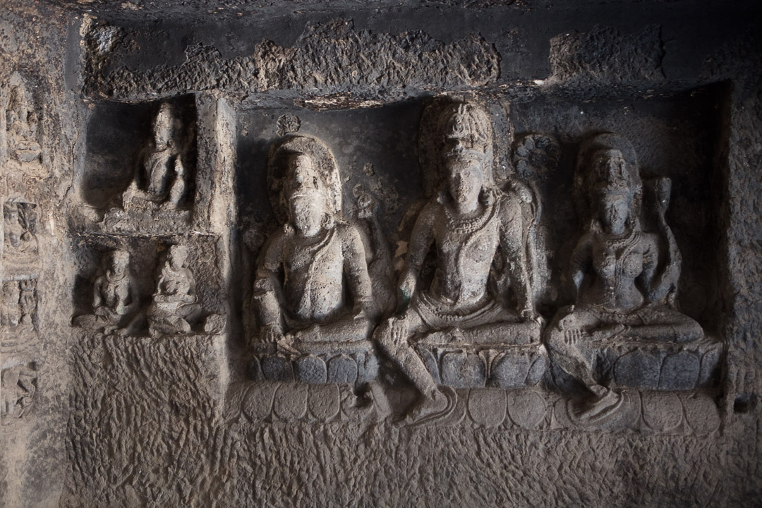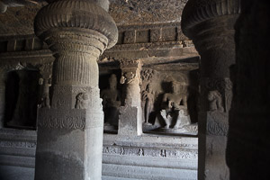 Die Tempel entstanden in der Zeit zwischen ca. 550-950 nach Christus, in der 1. Phase die frühen hinduistischen Höhlen, in der 2. Phase die buddhistischen Höhlen und in einer letzten Phase die späteren Hindu-Höhlen und die Jain-Höhlen.