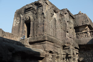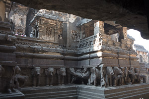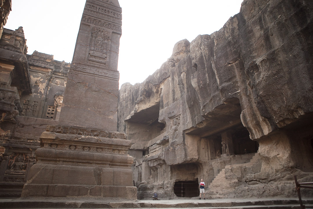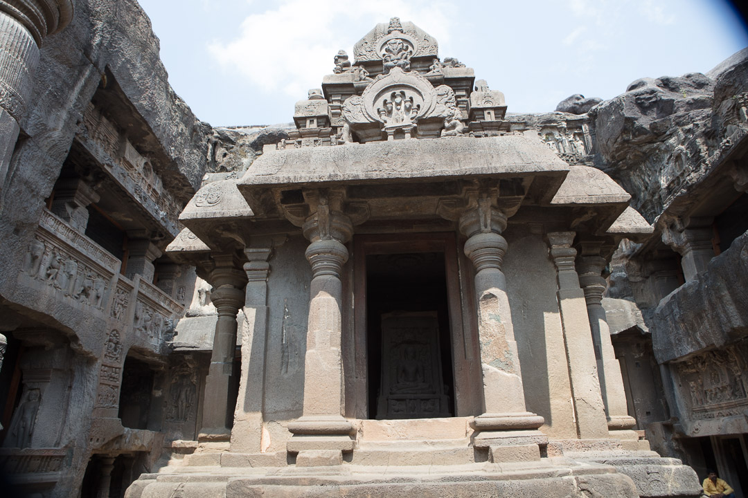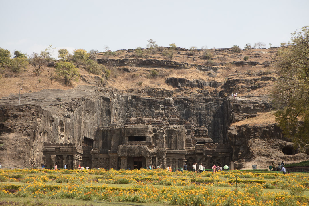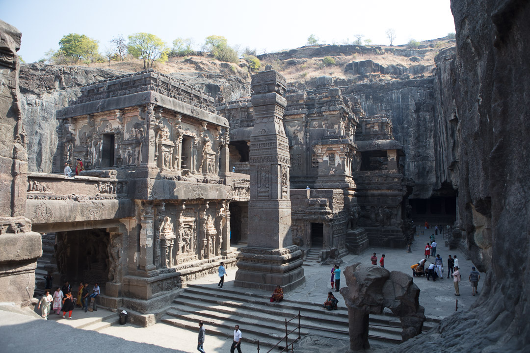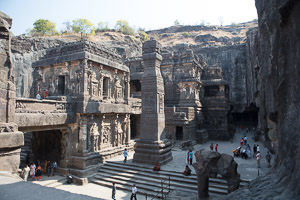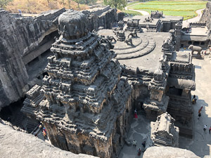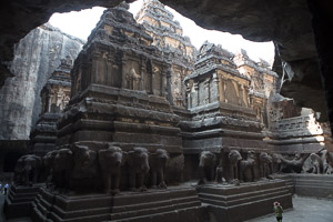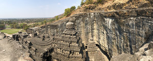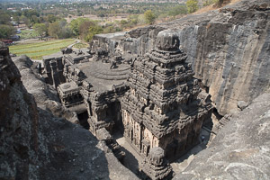 Blick auf die centrale und dominierende Höhle 16, den Kailasa Tempel, das grösste monolithische Bauwerk der Welt