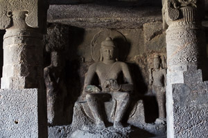 ein Vihara (Kloster). Einzigartig ist die Anlage mit den 2 steinernen Gebetsbänken, eine solche Konstruktion findet sich sonst nur noch in einer anderen Höhle in Indien in den Kanheri Caves
