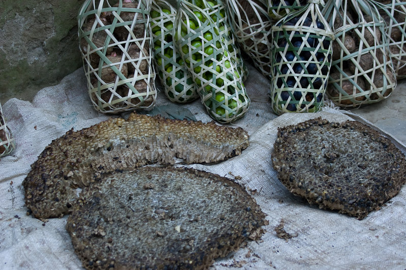 kleiner Markt mit Honigwaben und intelligent verpacktem Gemüse