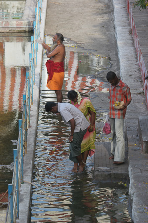 rituelle Waschungen am Lotus-Teich im Minakshi-Tempel
