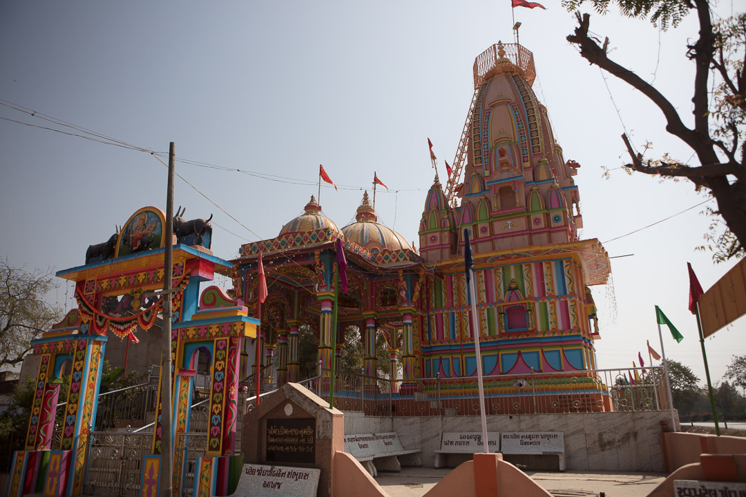 An der Strasse von Rajasthan nach Ahmedabad. Tempel in bunt scheinen die augenblickliche Mode zu sein