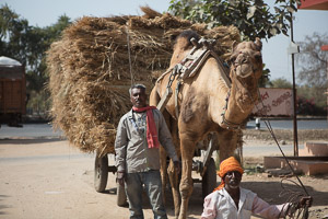 Trotz massivem Autoverkehr findet man noch Kamelkarren als Transportmittel, auch im Strassenbau. Gujarat hat eine eigene Kamelrasse