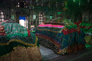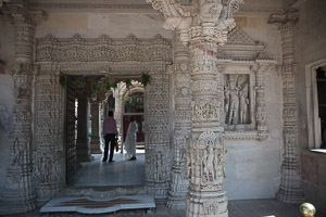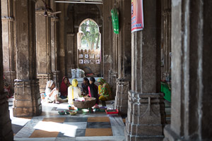Der Jain Tempel liegt nördlich der Altstadt von Ahmedabad und wurde 1848 von einem reichen Kaufmann (deren es hier viele gibt) aus Marmor erbaut. Er ist Dharamanath, dem 15. Tirthankar, geweiht. Wie in fast allen Jain-Tempeln ist fotografieren in dem reichverzierten Tempel verboten.