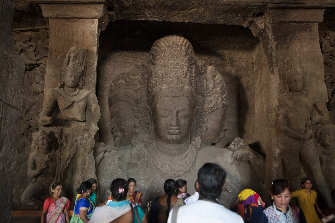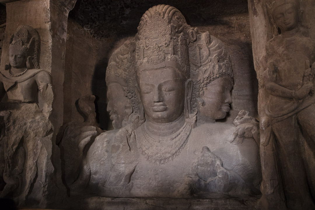 Trimurti, eine Darstellung von Shiva, Vishnu und Brahma in einer Person (oder auch der entsprechende Aspekte von Shiva)