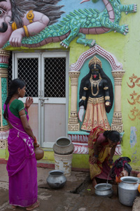 geweiht Durga und Jagannath (letzterer wegen des Festes verborgen) enthält der Tempel die Darstellung von 108 Gottheiten
